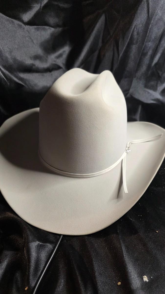Imagine it pulled low against a relentless sun, the brim framing views of rolling plains and starlit camps, or hung on a peg after a day of honest labor, its felt holding the scent of sagebrush and saddle leather. Crafted from premium fur felt in the USA, its surface remains pristine and unworn, a testament to enduring quality that marries rugged utility with refined presence, sized 7 1/4 for a fit that feels like fate. Not just a hat, it's a companion to journeys—the snap of wind, the weight of legacy, the subtle grace of the open range.