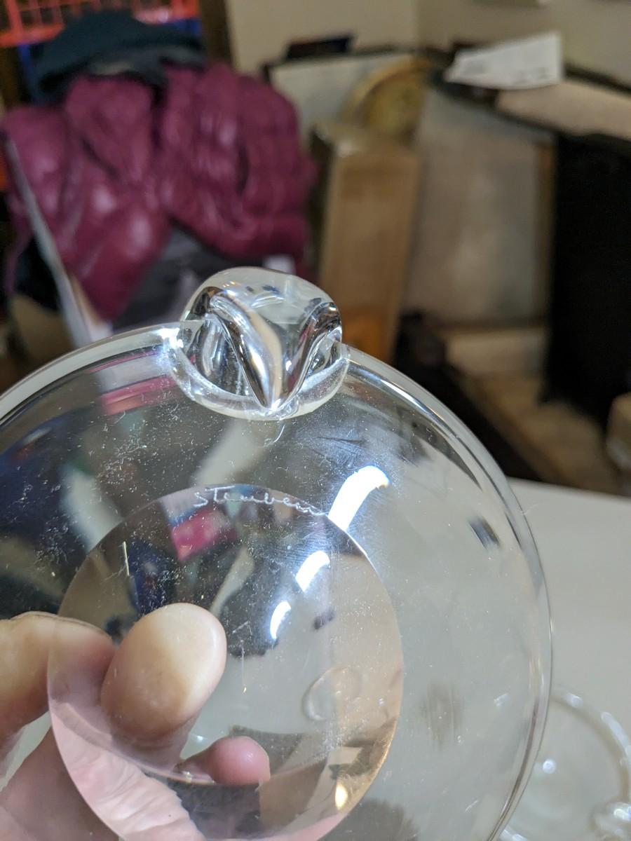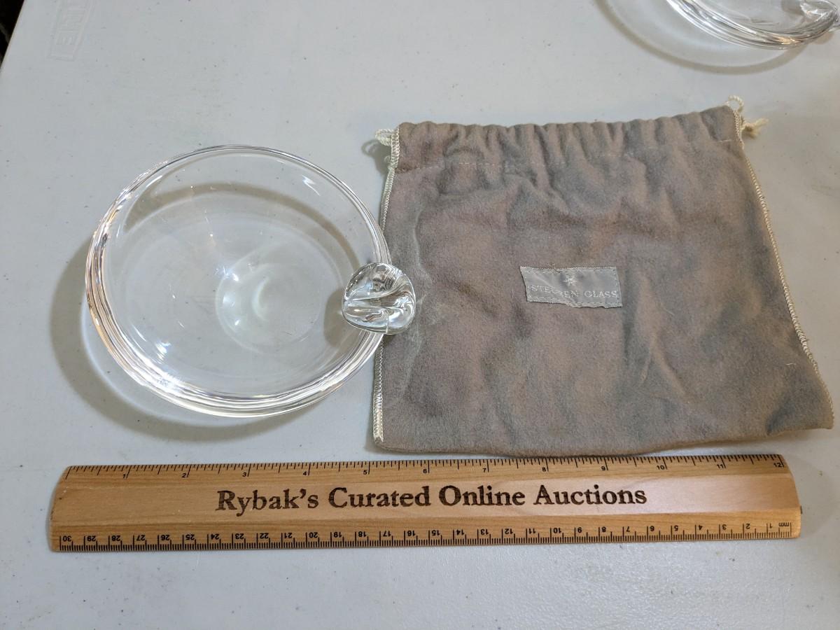 Steuben Crystal Art Glass Modernist Ashtray Tilted Thick Base Signed