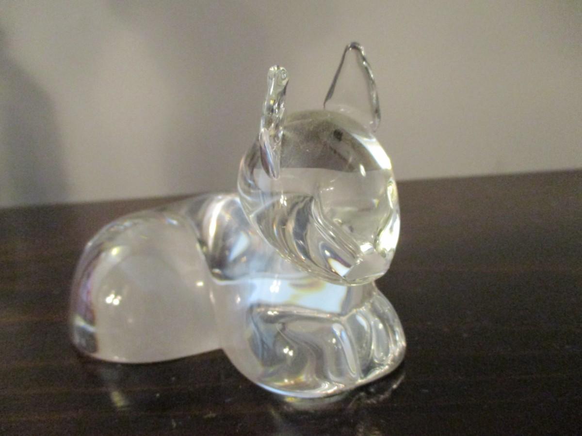 Steuben Crystal Kitten/Cat Signed Paperweight - 4 .5 inches long