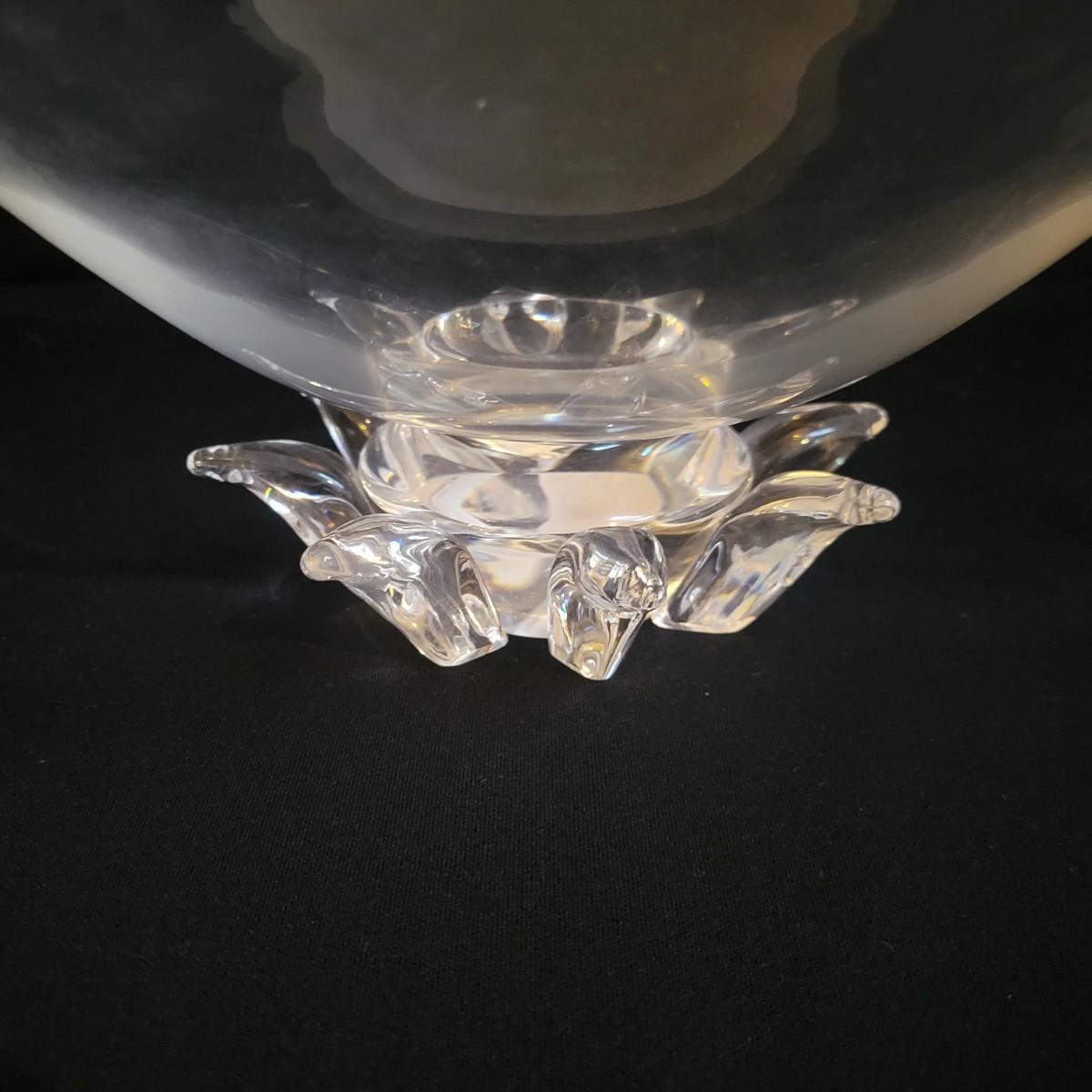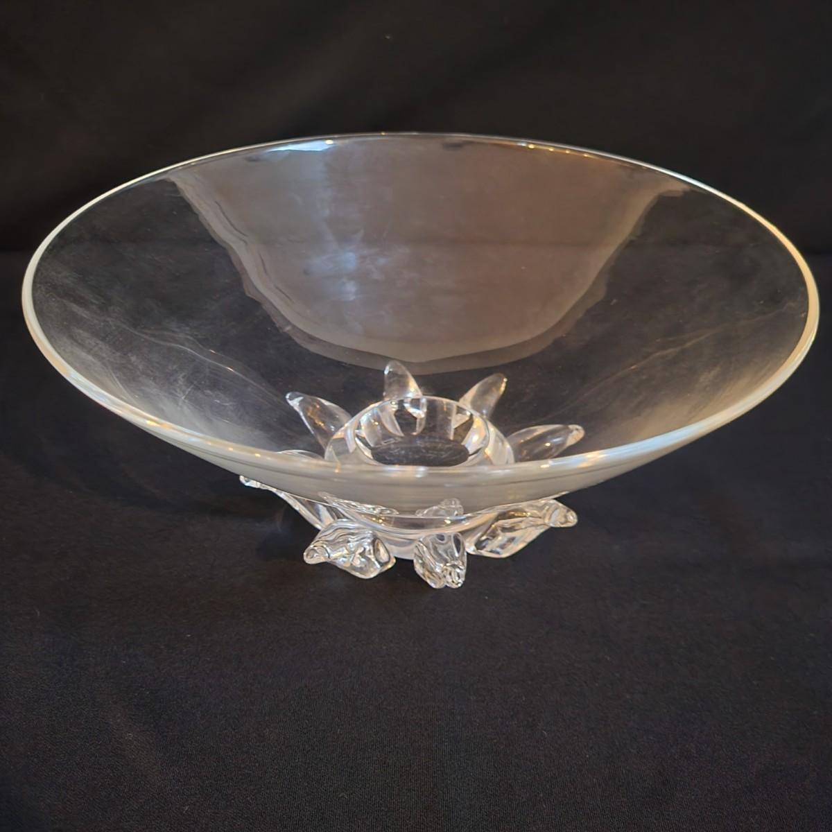 A vintage mid century Steuben crystal peony footed bowl. It measures approximately 12.5"D x 6"H. Shipping available