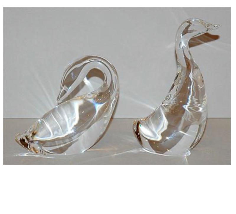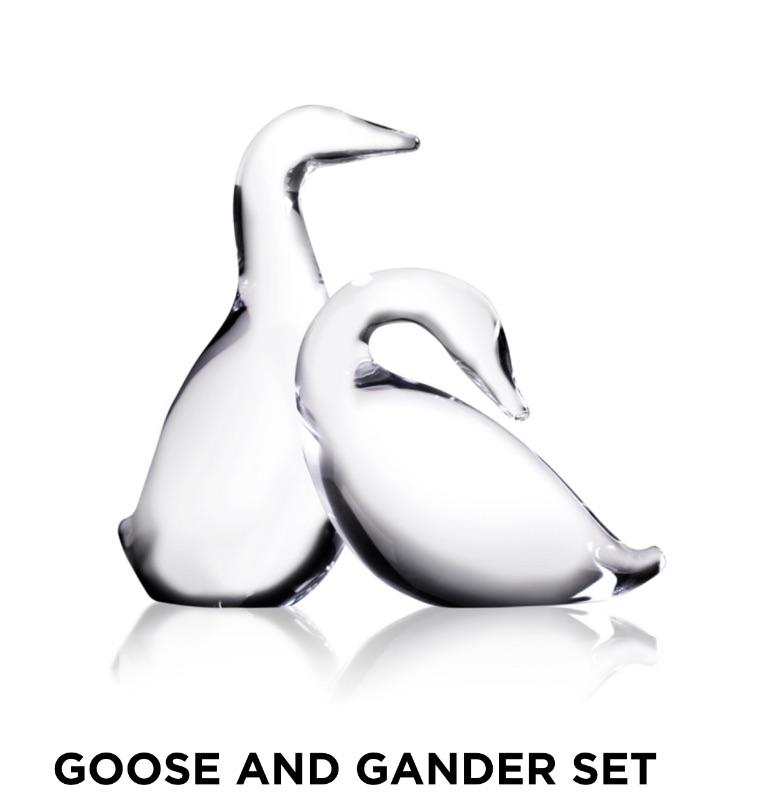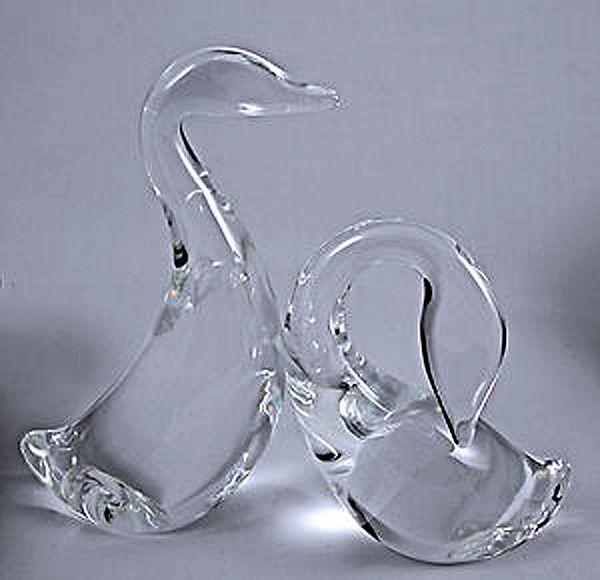 Steuben Glass Goose and Gander Retired pieces #8344 and #8358 Vintage Crystal Art Glass Designed by Lloyd D. Atkins