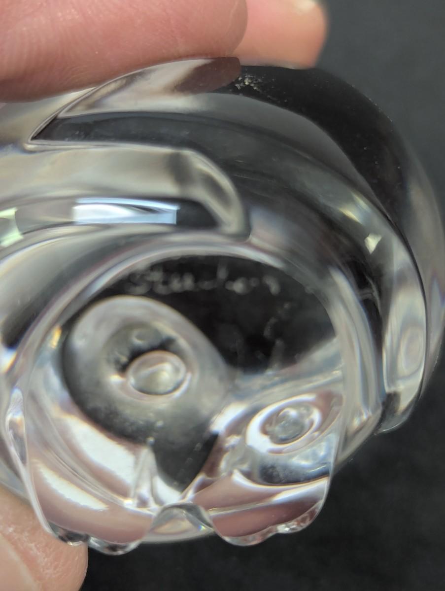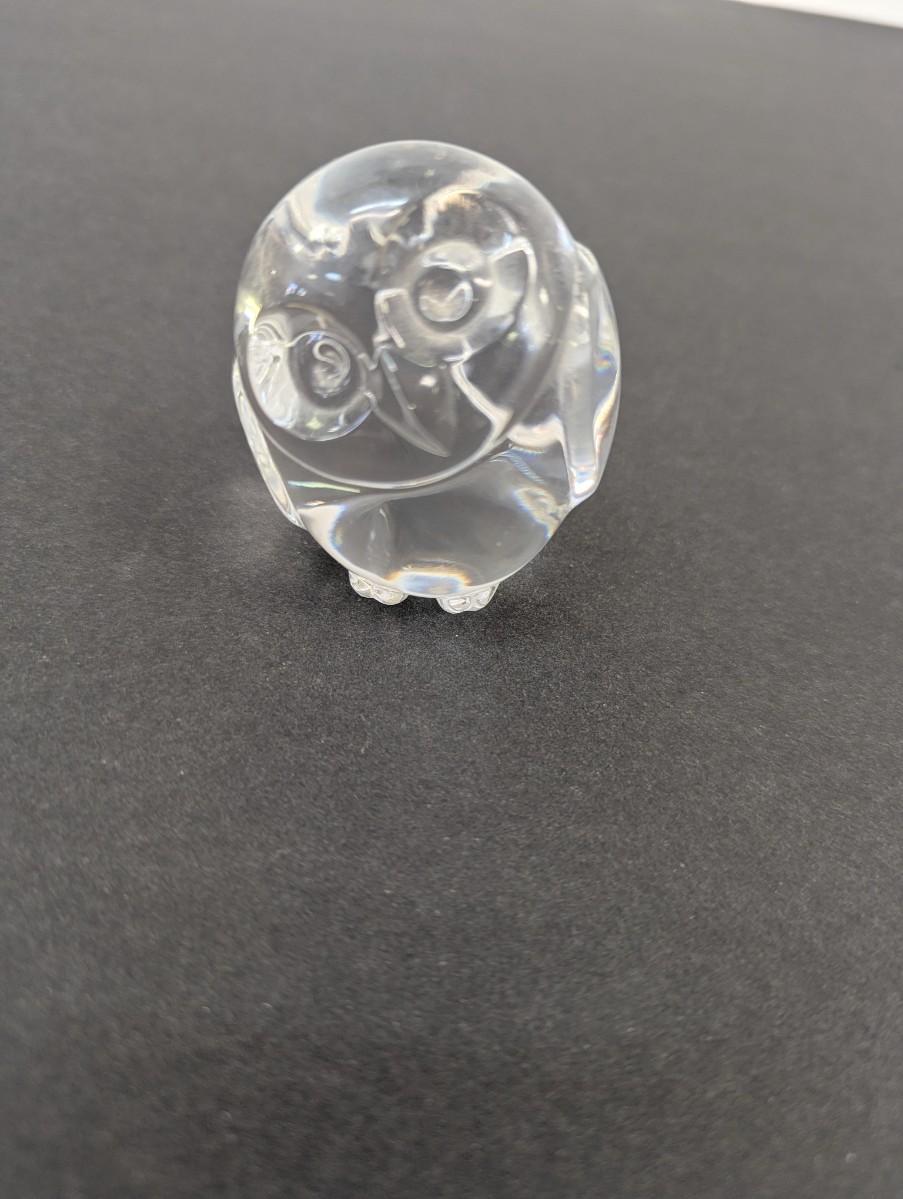 Steuben Owl Hand Cooler Paperweight Marked Crystal Glass