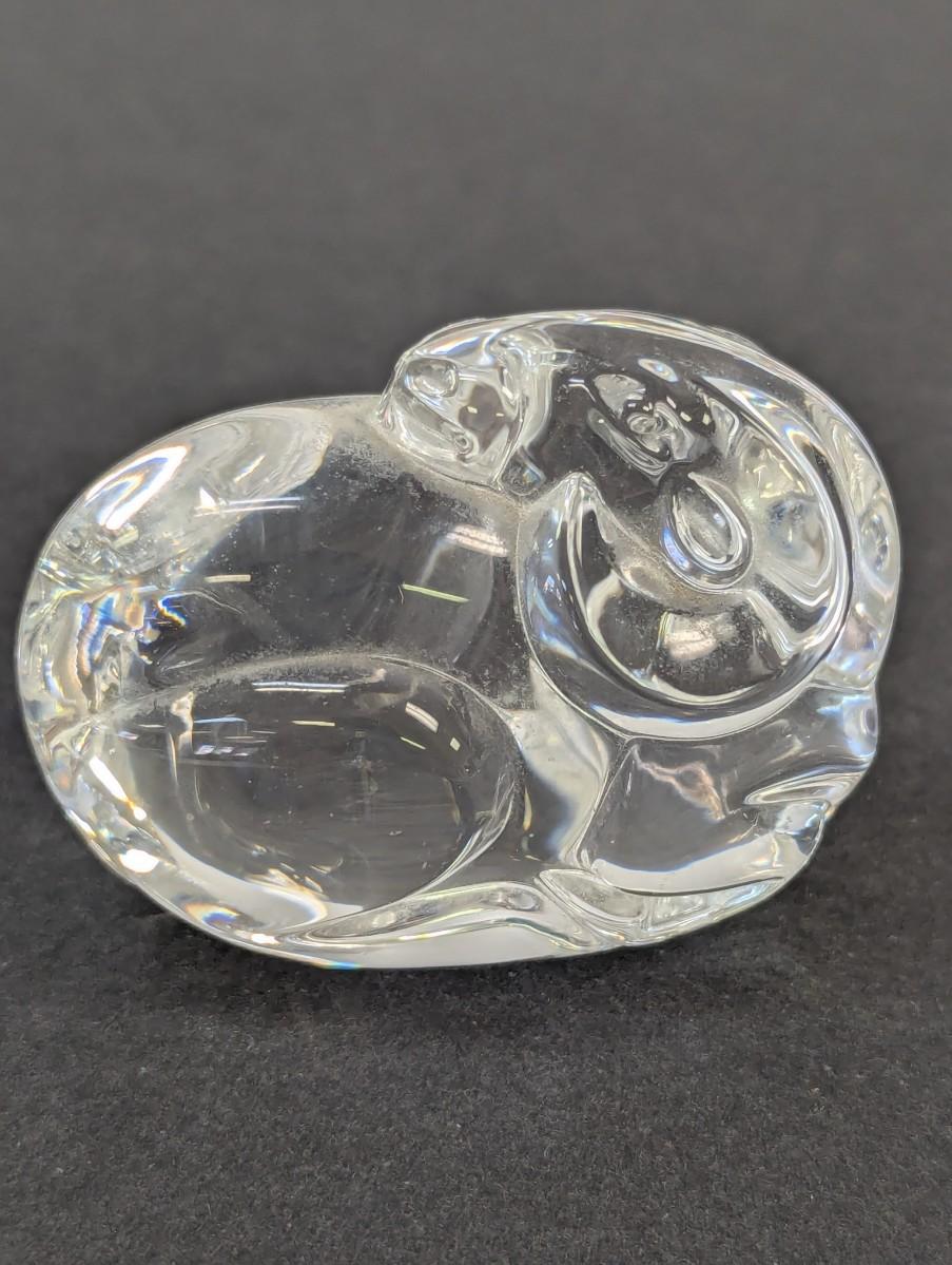 Steuben Ram Hand Cooler Paperweight Signed Crystal Glass