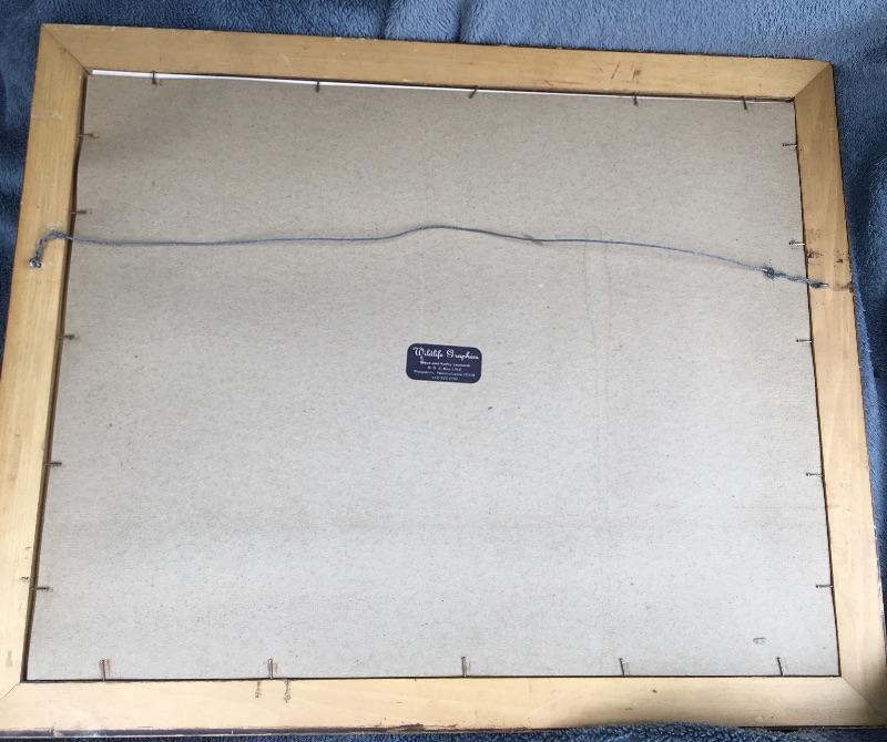 Very good overall condition. Artwork measures 14” x 10”. Frame measures 23”w x 19”h. Packaging and shipping services are available. Please contact us for a quote before bidding.