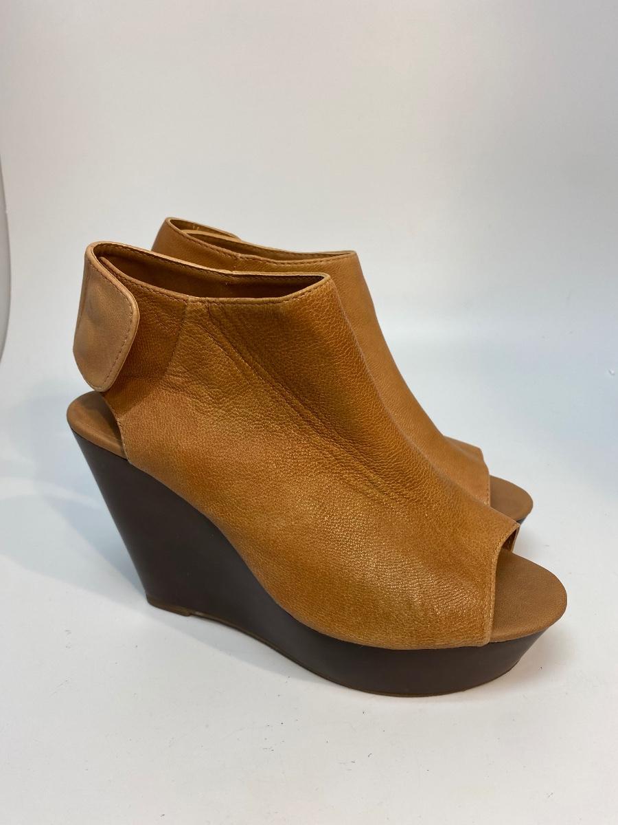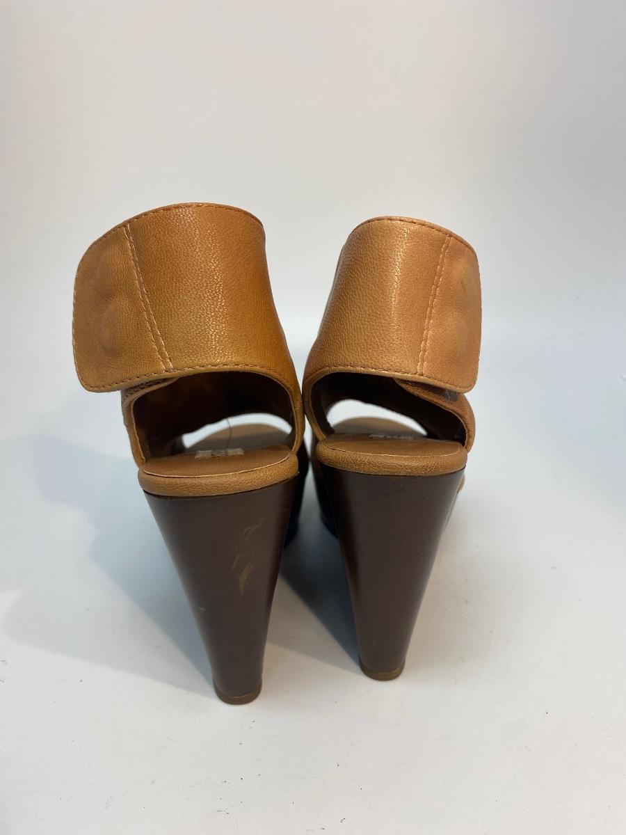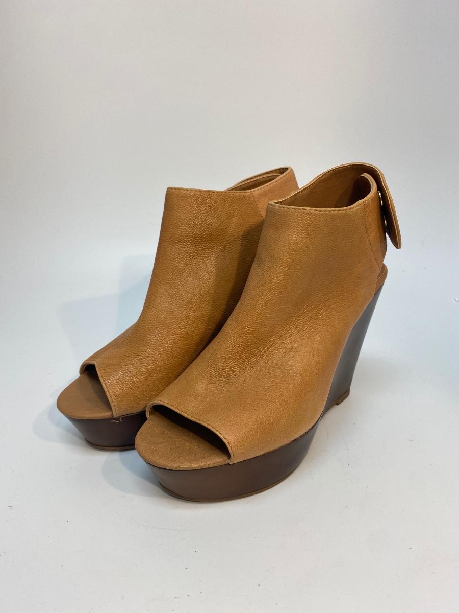 Steve Madden Bestiee Brown Side Snap Sling Back Wedge Peep Toe Bootie Heels Size 6.5