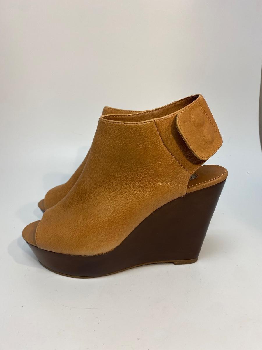 Steve Madden Bestiee Brown Side Snap Sling Back Wedge Peep Toe Bootie Heels Size 6.5