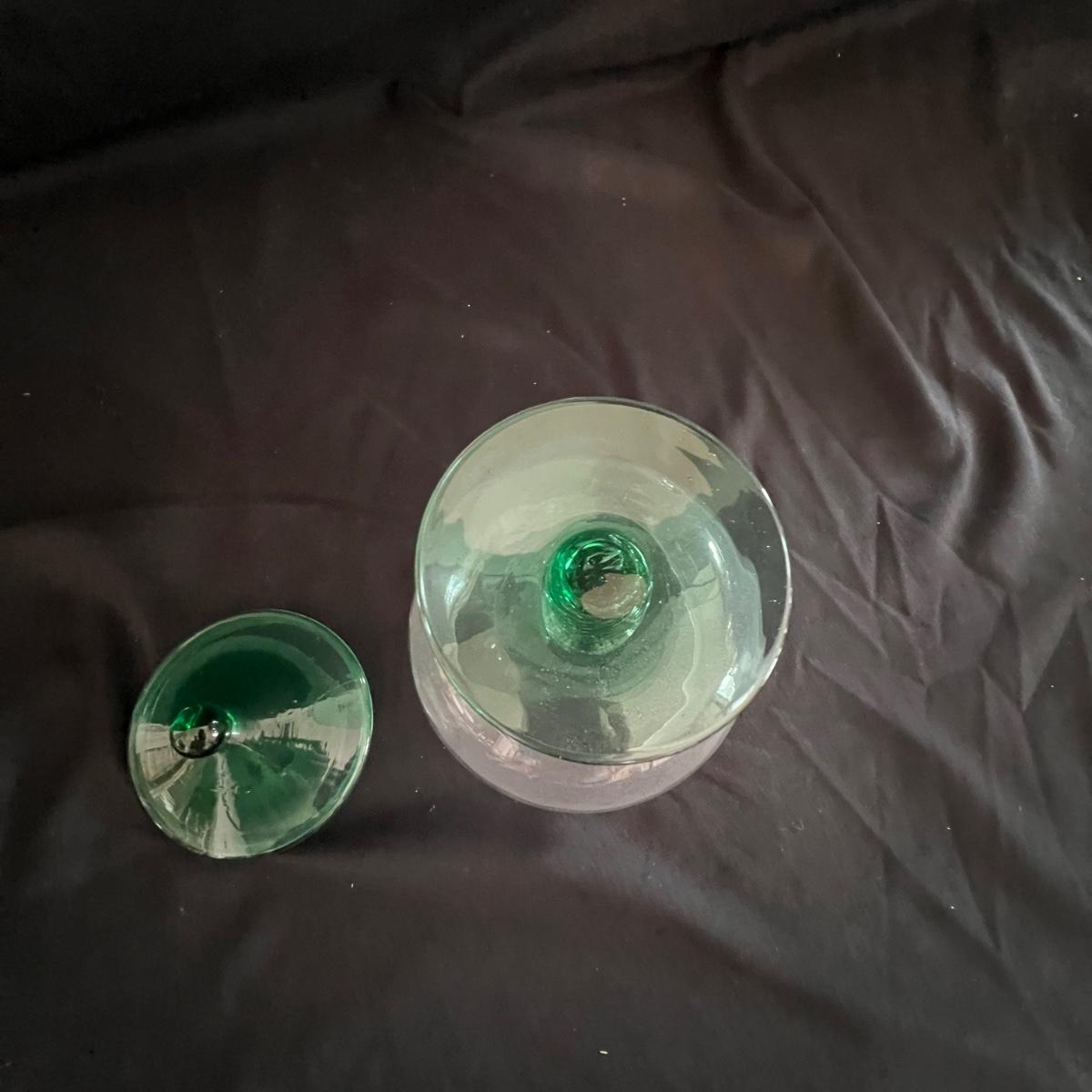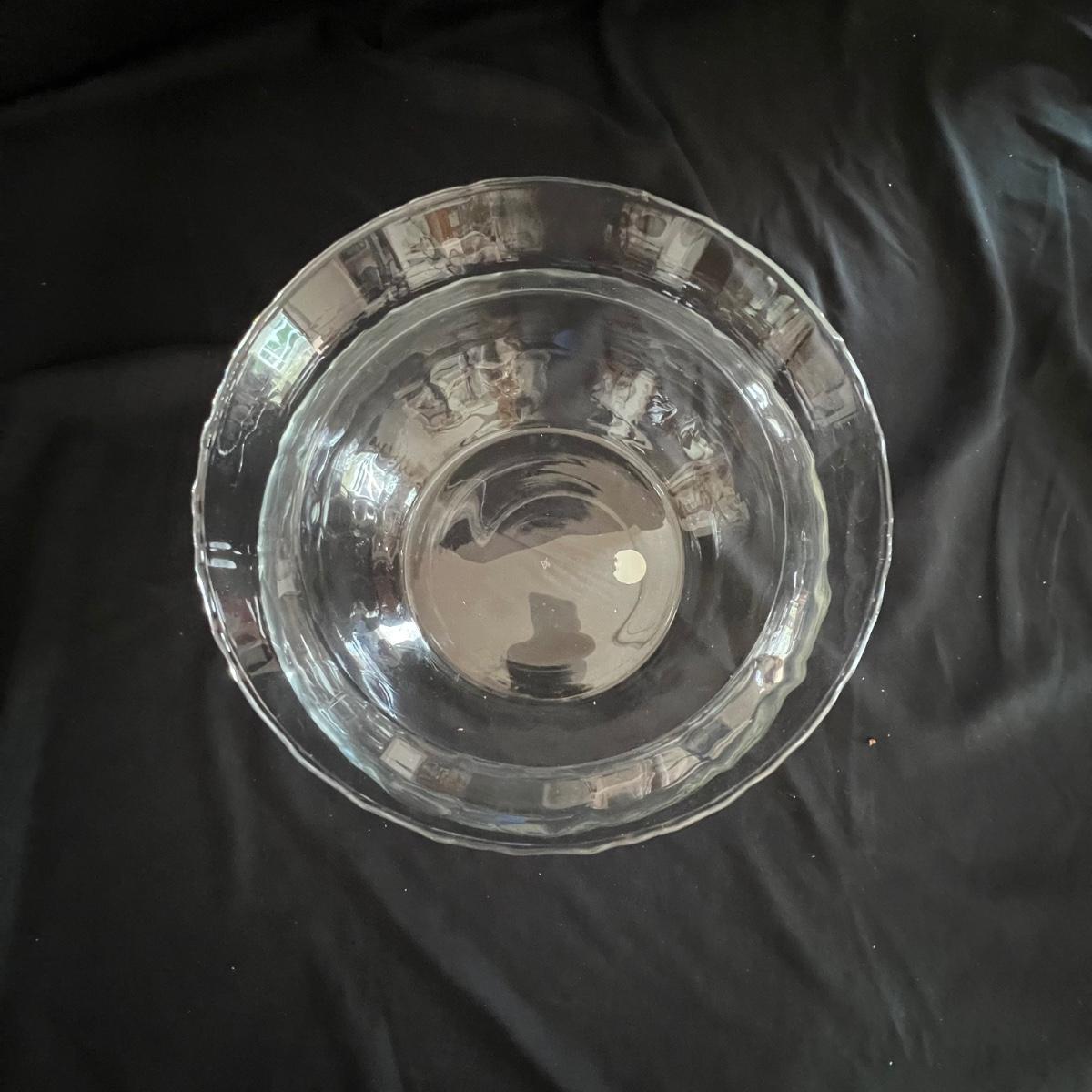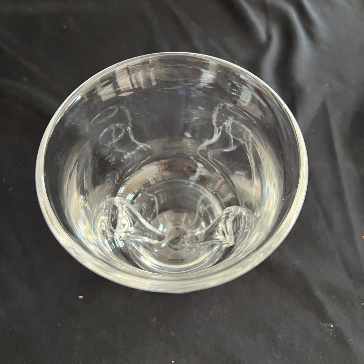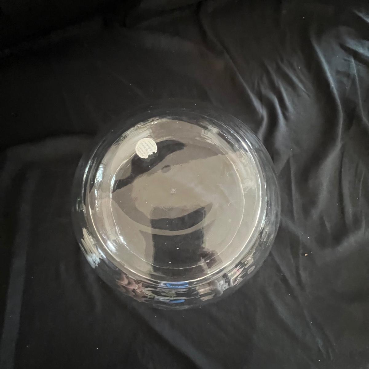 Three pieces of glass decor. One large bowl is Princess House and measures approximately 8”D x 6.25”H. The Steuben vase measures approximately 4.25”D x 6”H and the covered dish measures approximately 5”D x 7”H.