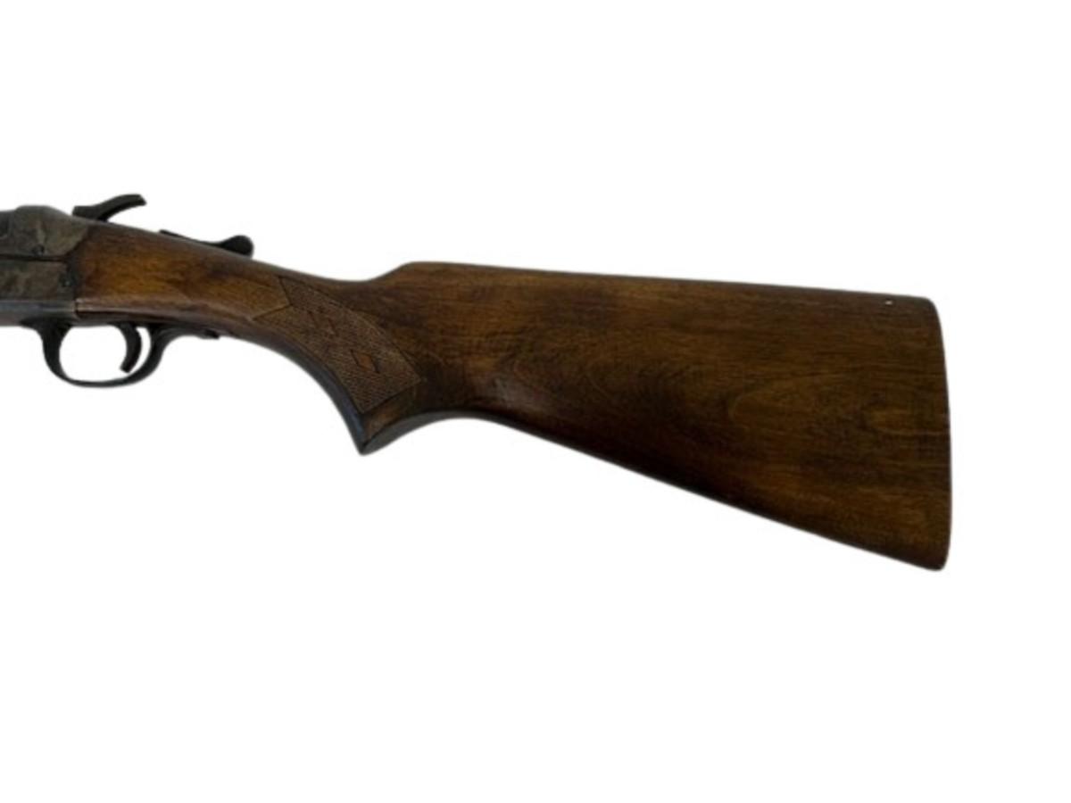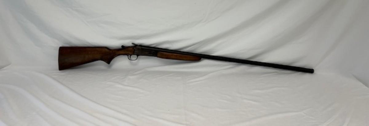 Single shot. Missing butt plate. Serial number B54476. Not tested. Length of barrel is 36". Overall length is 52". [