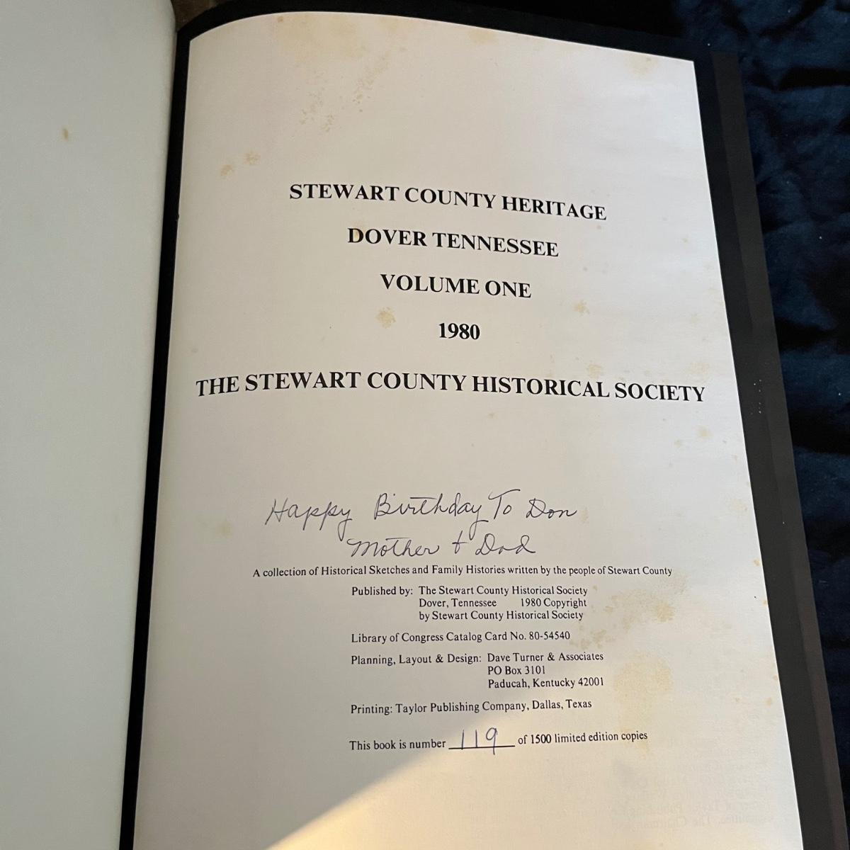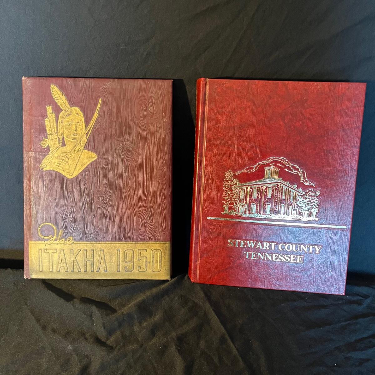 Lot includes a limited edition numbered 119 of 1500 Stewart County Tennessee Heritage book, volume one 1980. Also includes a 1950 Itakha yearbook.