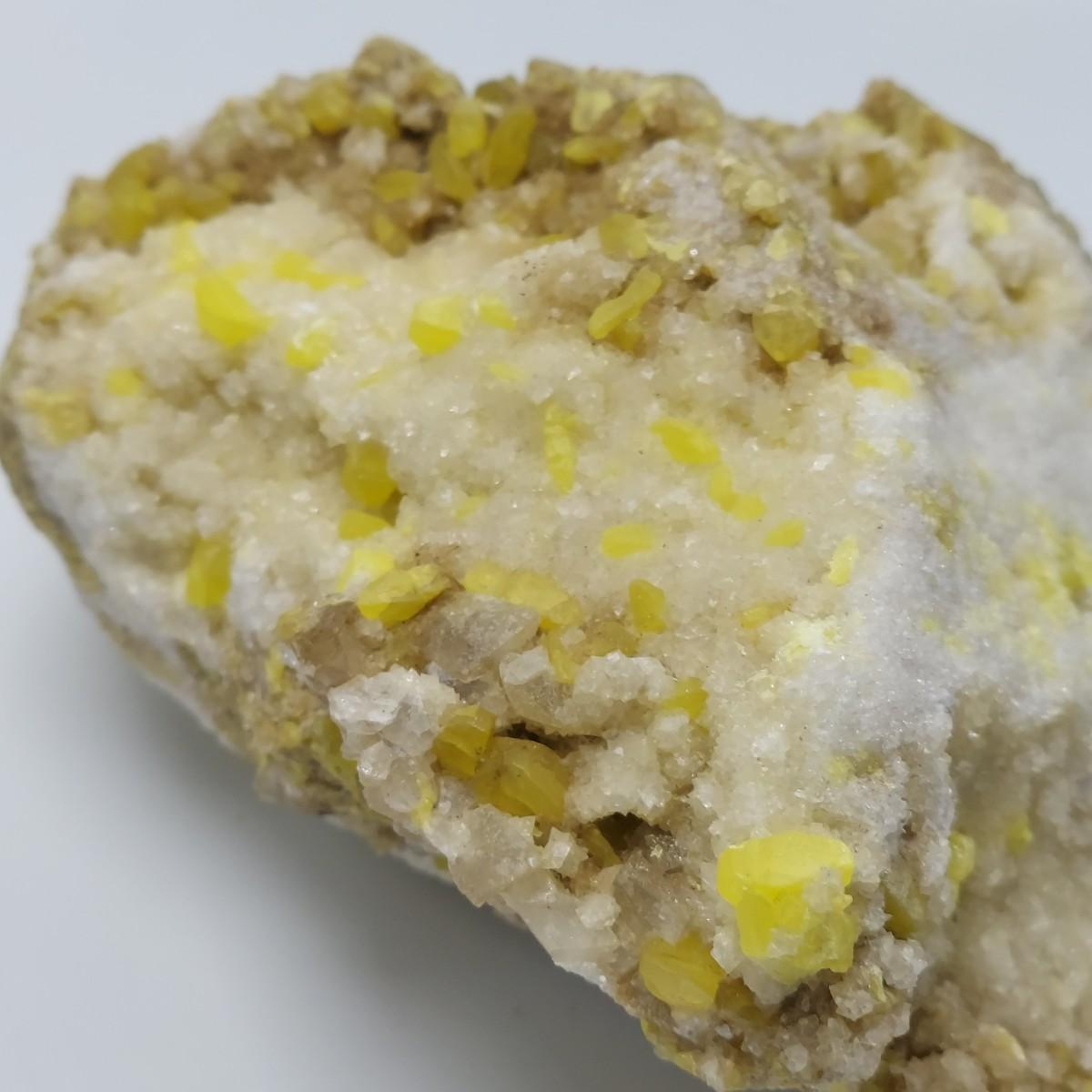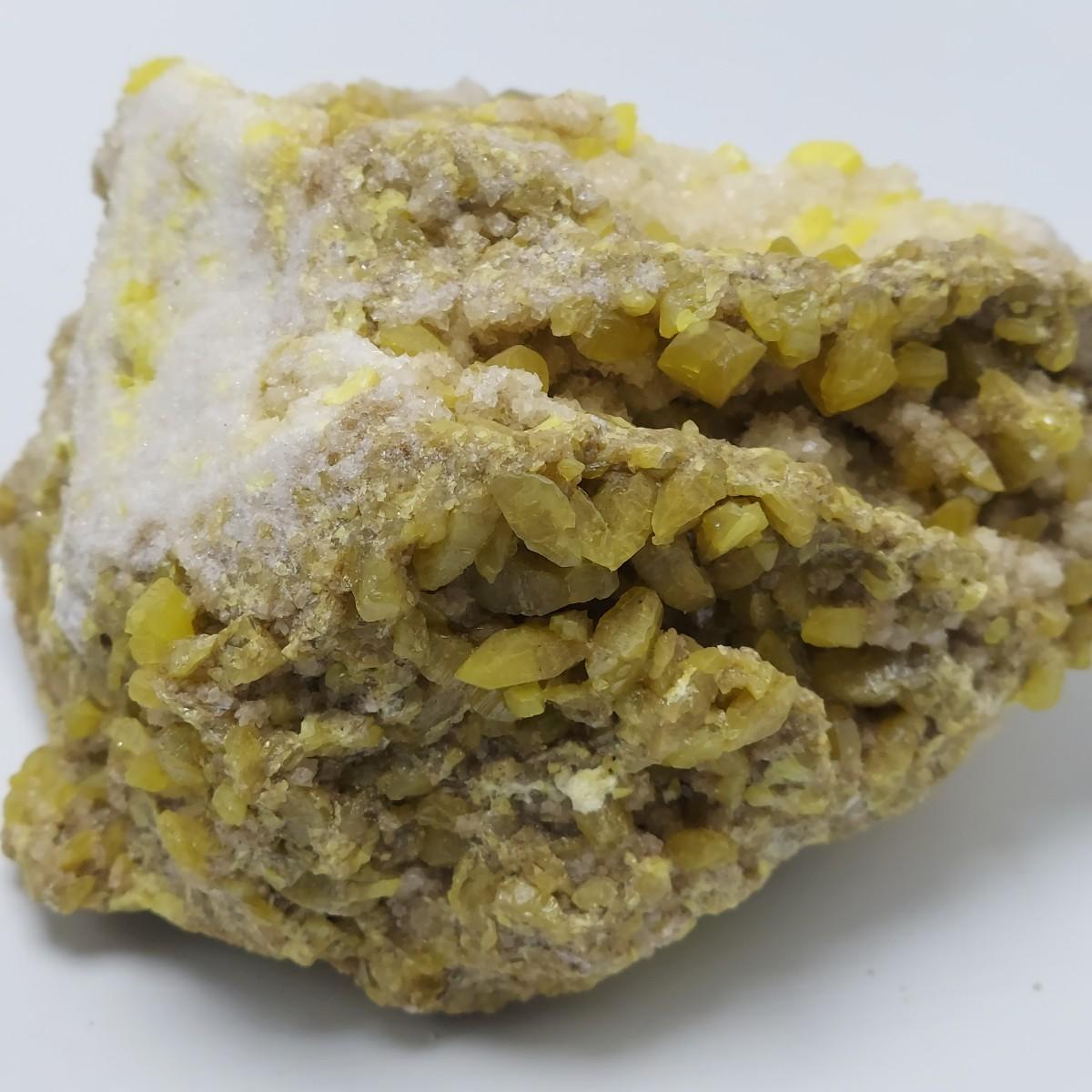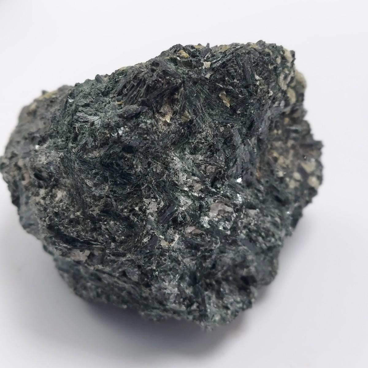 Contains five specimens. Appears to include stibnite, stilbite, calcite, actinolite and sulphur. The largest piece is roughly 5” x 4” x 5"H. Sulphur is shown under UV light.