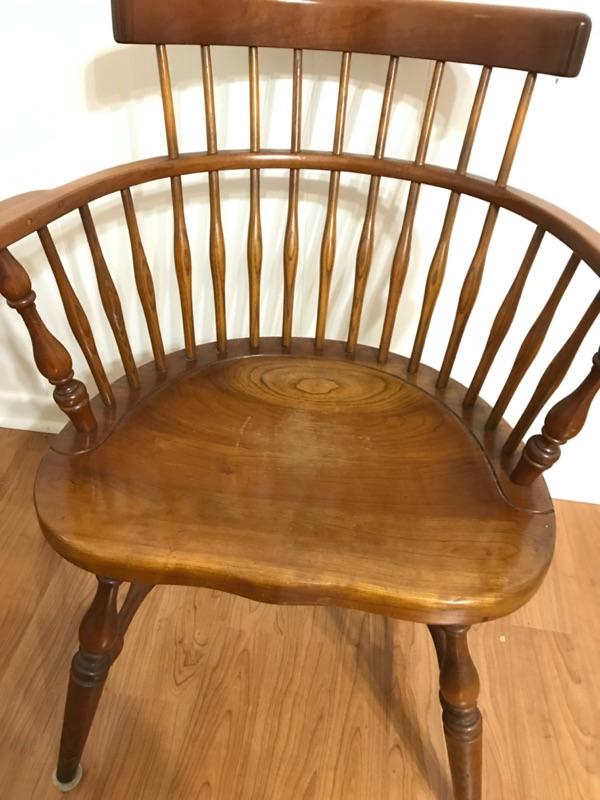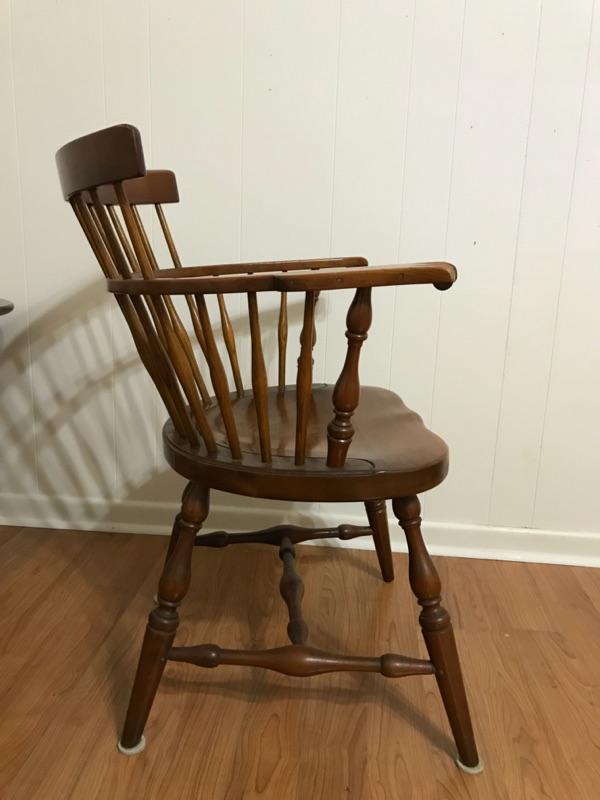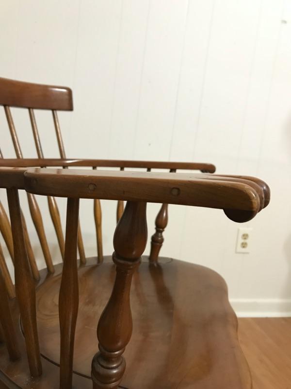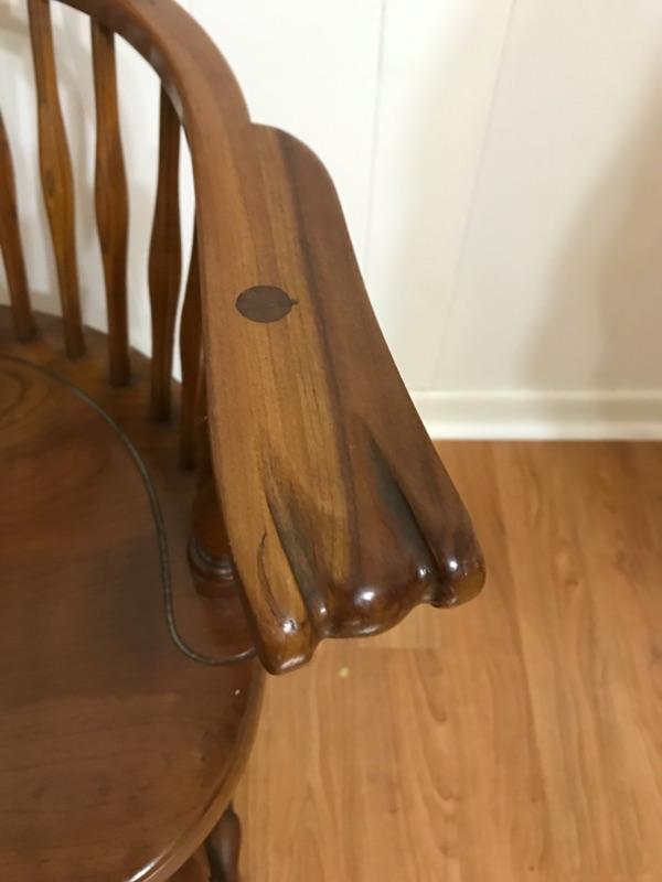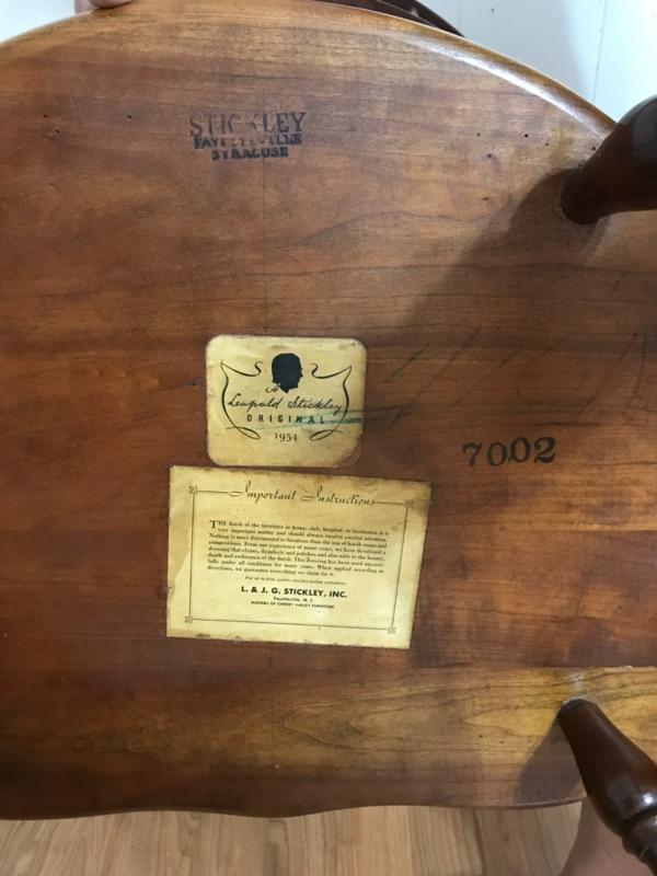 Leopoldo Stickler captain chair. Sturdy and beautiful, it is not your arts and craft era Stickler is known for, it was such a surprise to find these labels on the bottom of the chair. It is in perfect condition.
