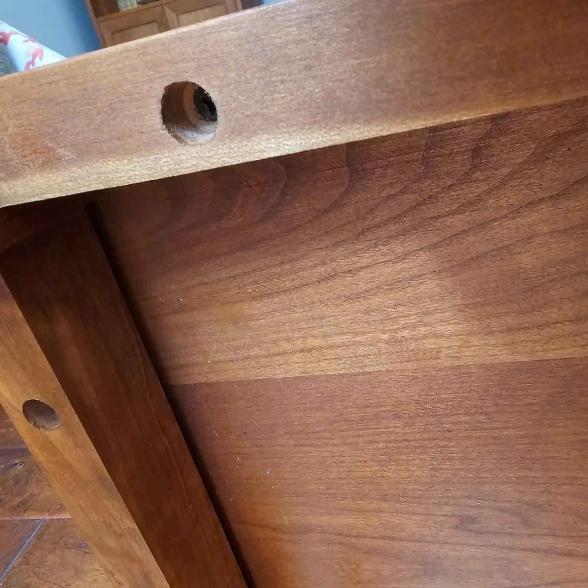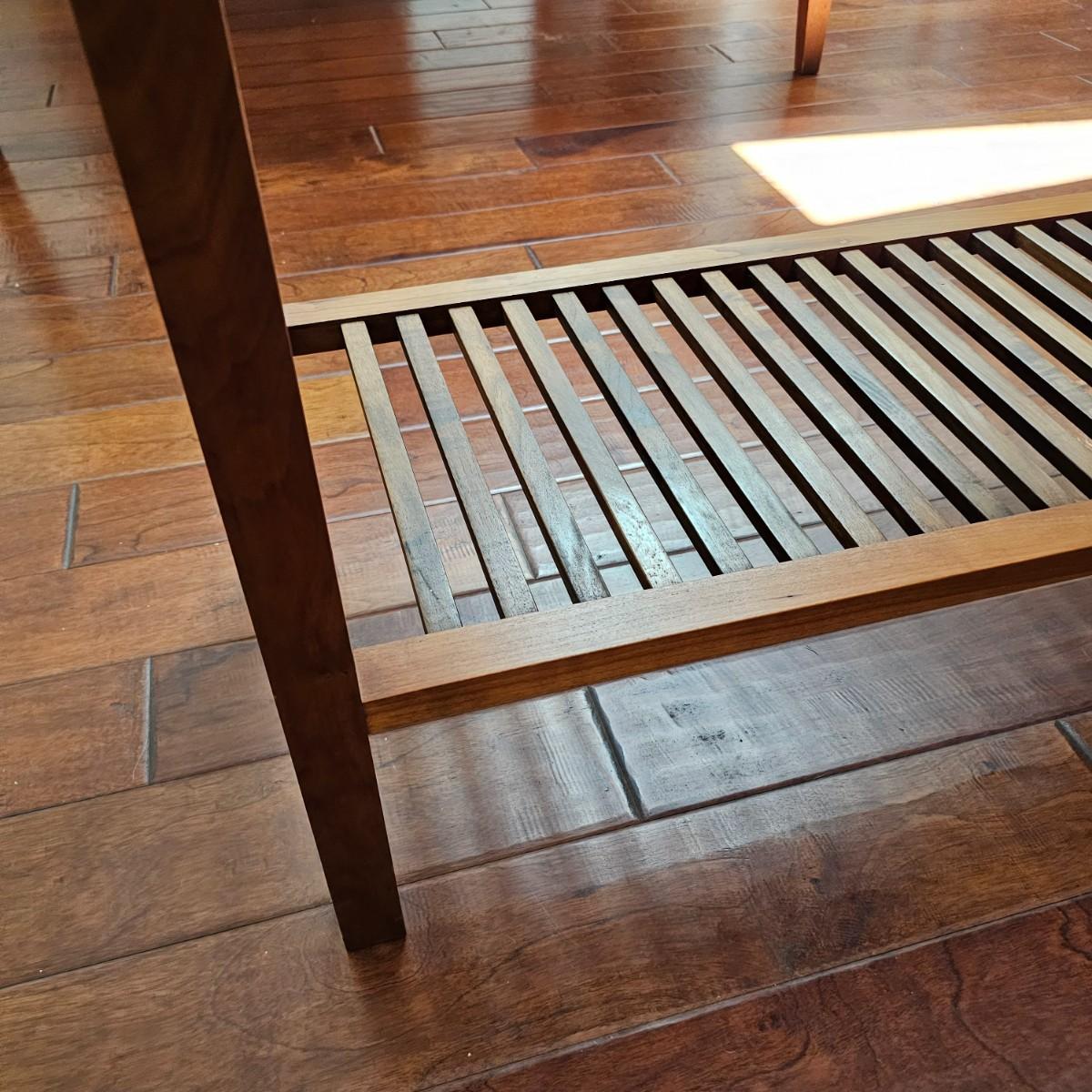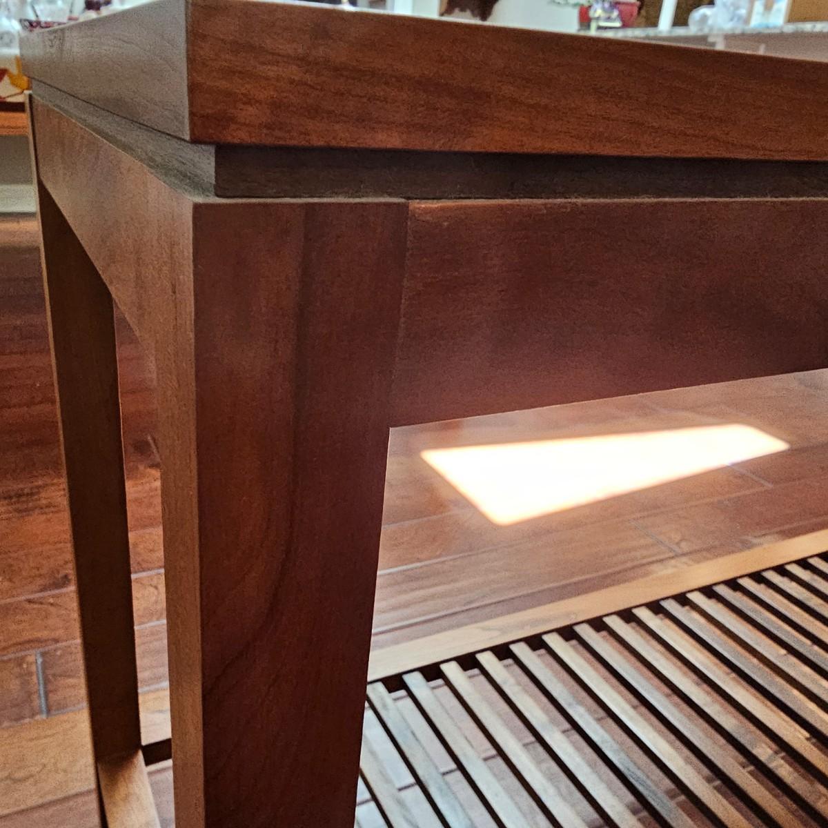 Solid wood table by Stickley in their traditional mission style. Table is elegant and has signature spaced boards on bottom shelf. Table measures 54" x 16" x 30"H. See photos for details. Local pickup only. Winning bidder must bring assistance to help move and load this item due to its weight and/or size.