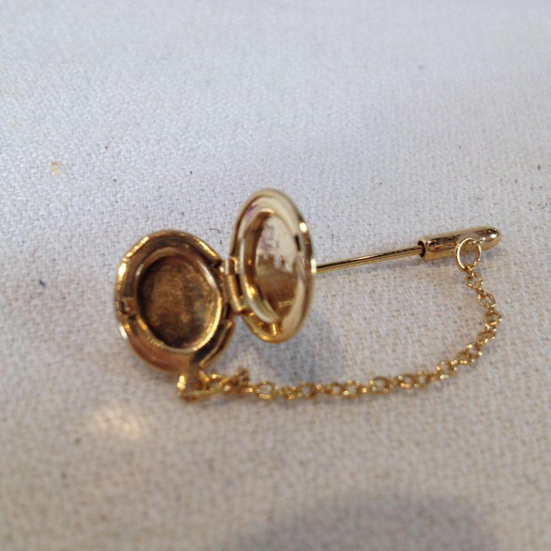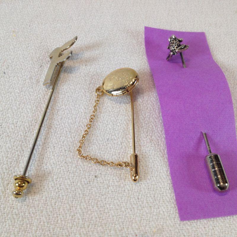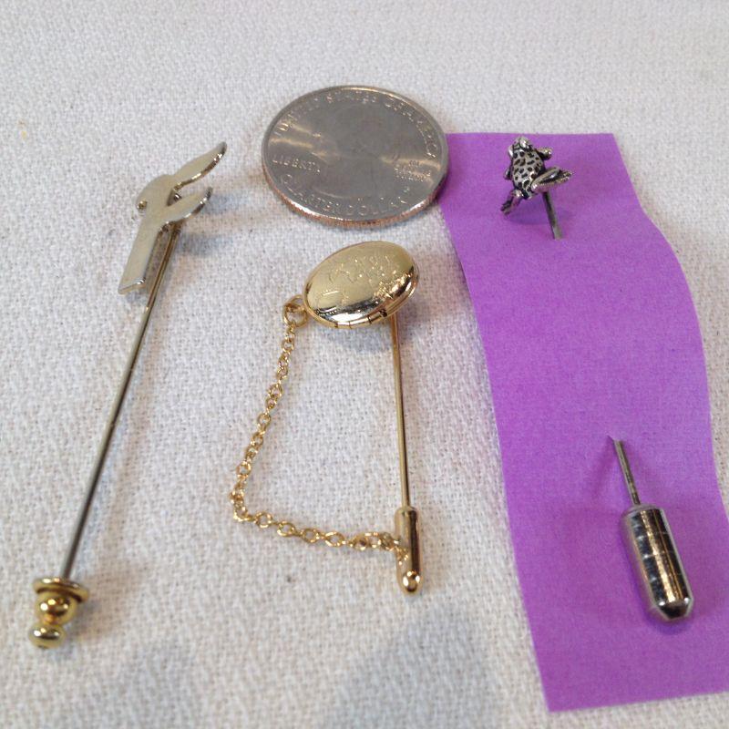 This offering is a set of three unique stick pins. One sports a Chinese figure, one is a locket with room for a nice little photo or lock of hair and one is a cute little frog.