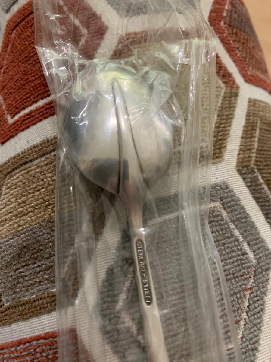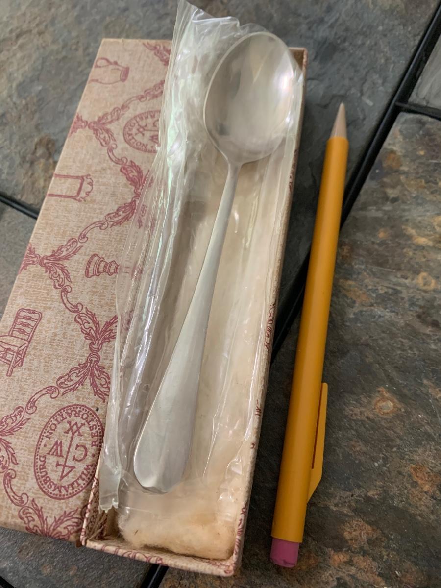 Spoon has never been out of the plastic - One end is box detached but here. Buying as is, as found in the estate.