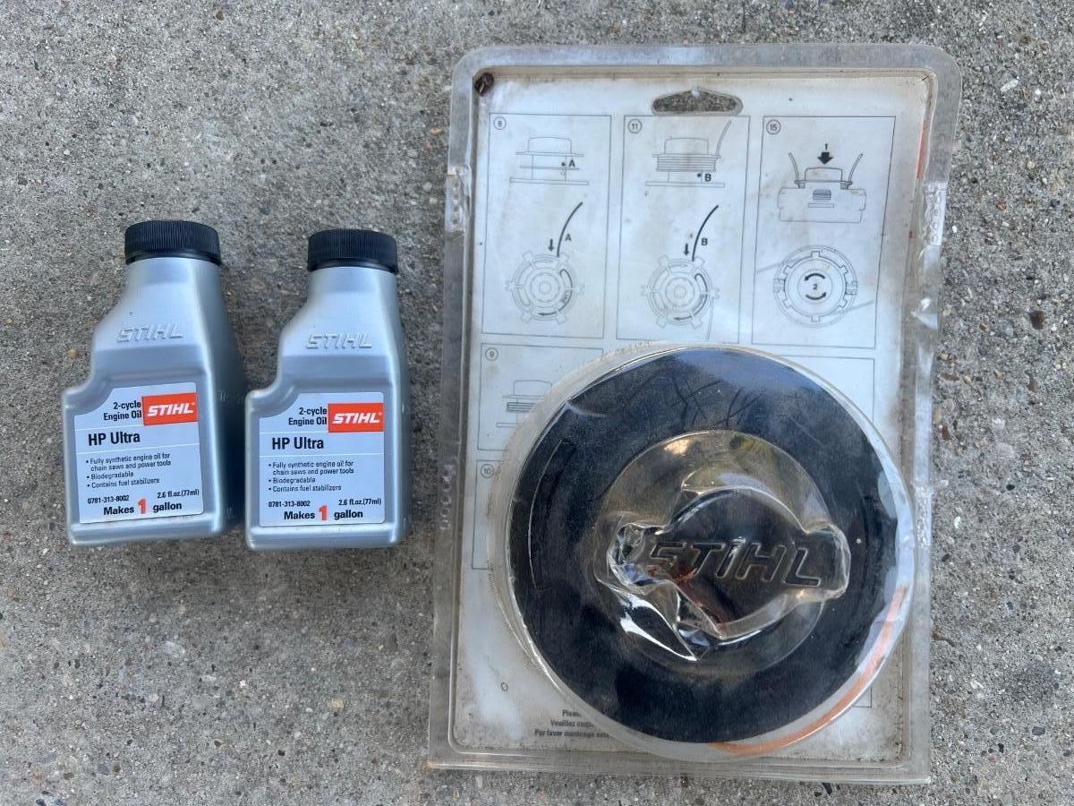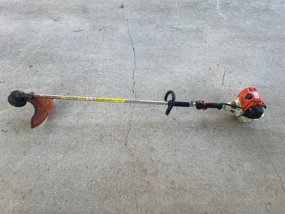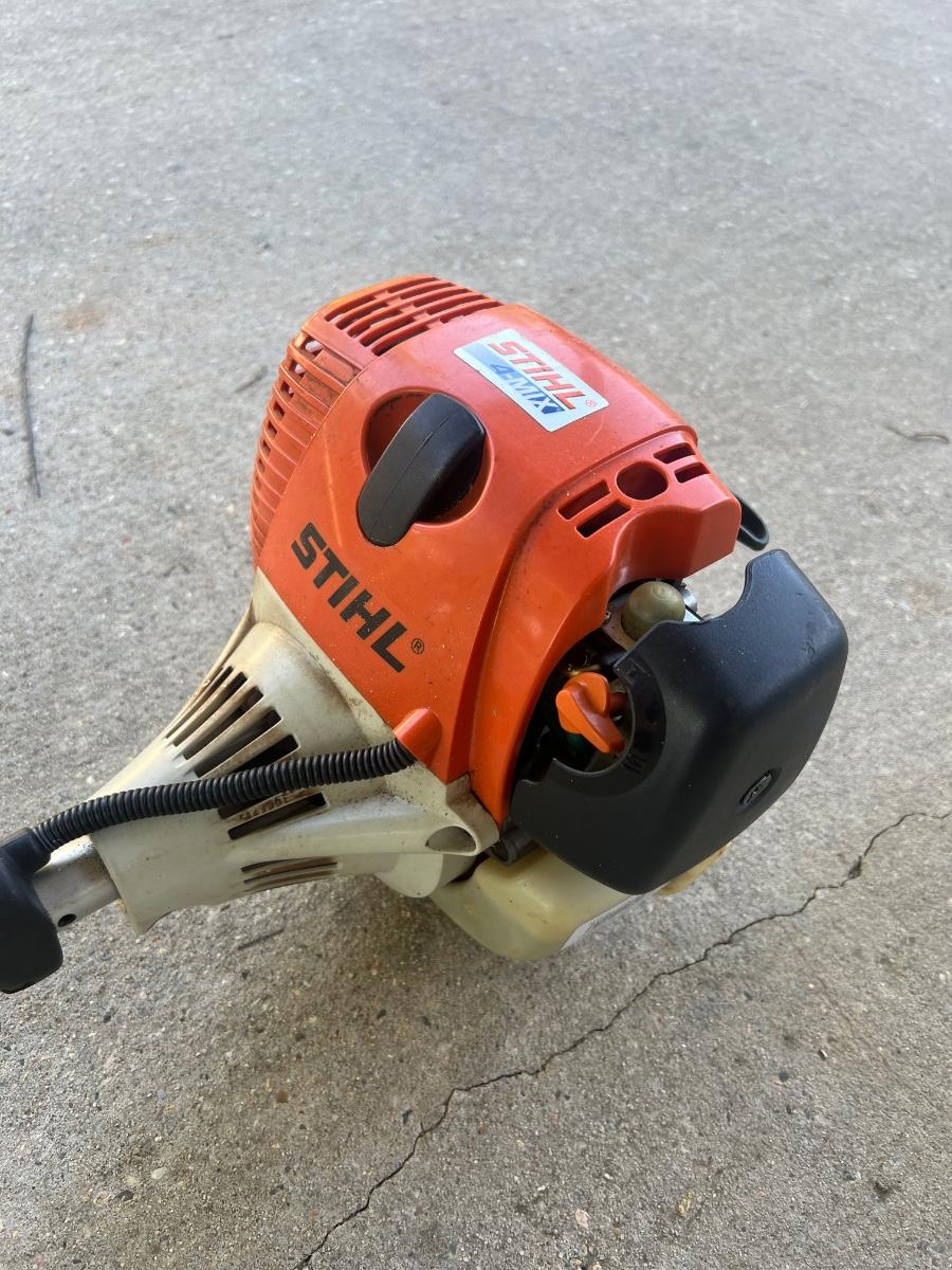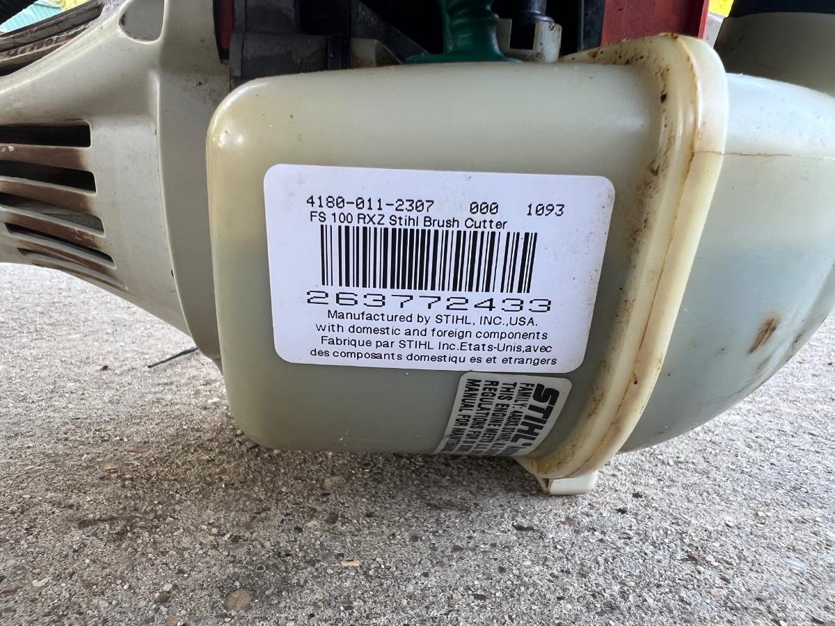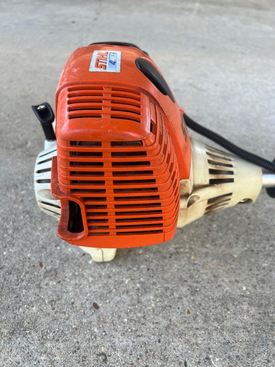 Stihl FS100RX trimmer. Started right up when testing. Works as it should. See pictures for condition. Comes with 2 - 1 gallon oil mixers and a new head.