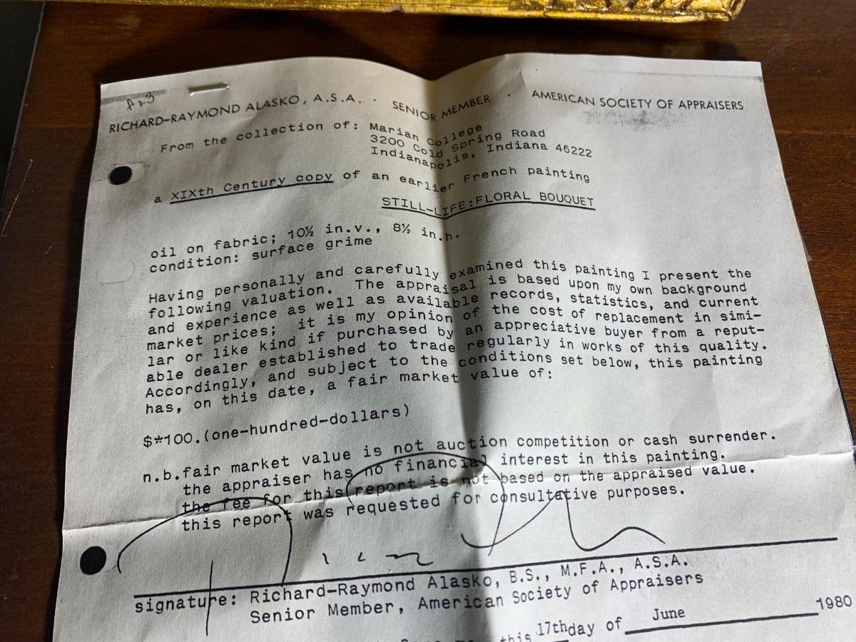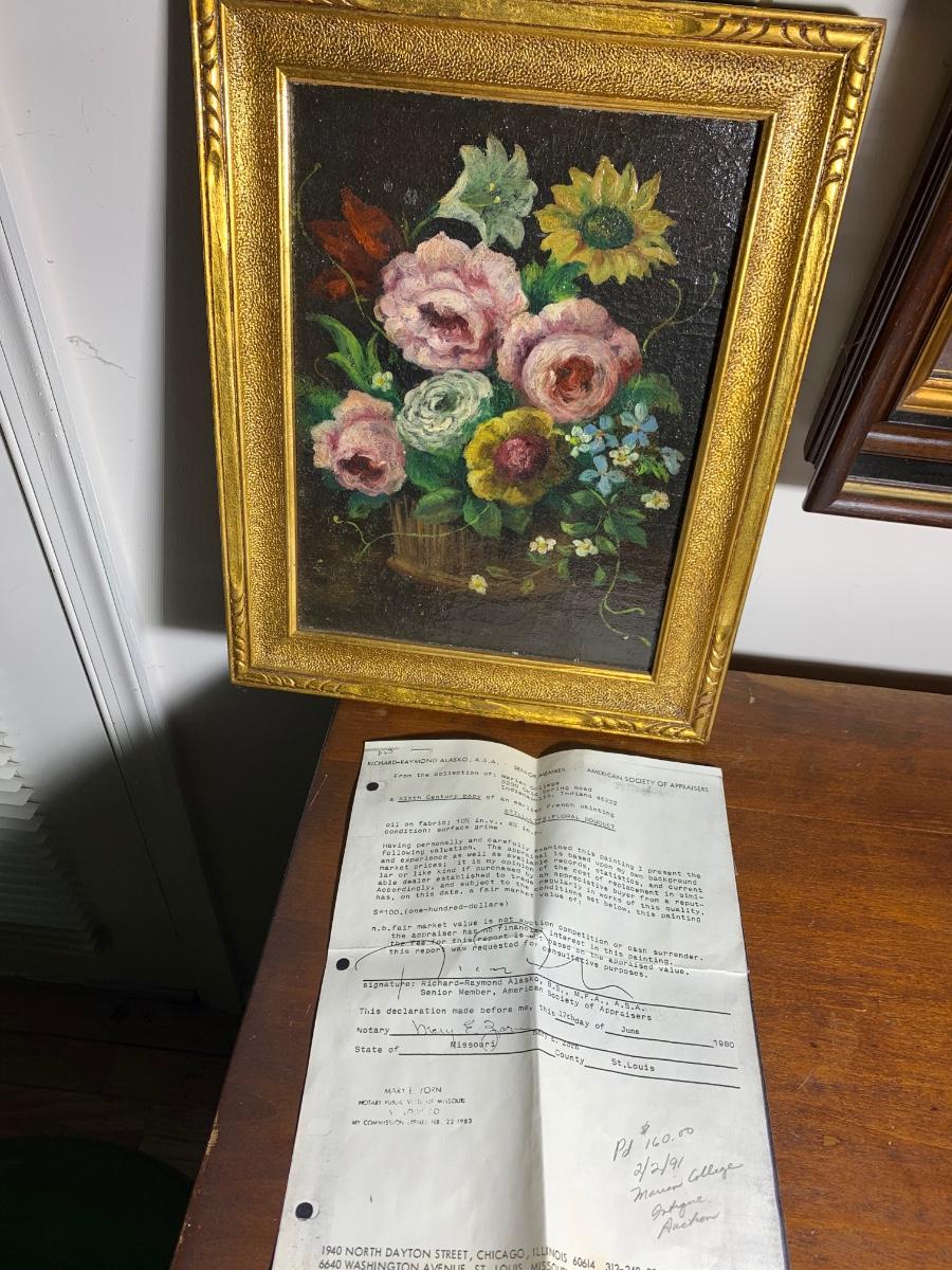 Still Life Floral Framed Oil On Board w/Appraisal