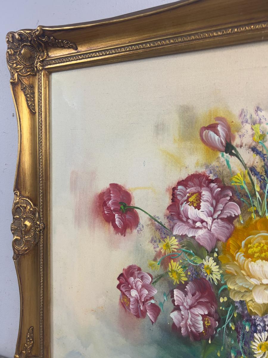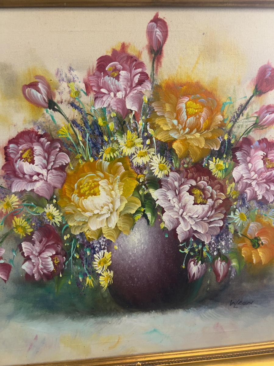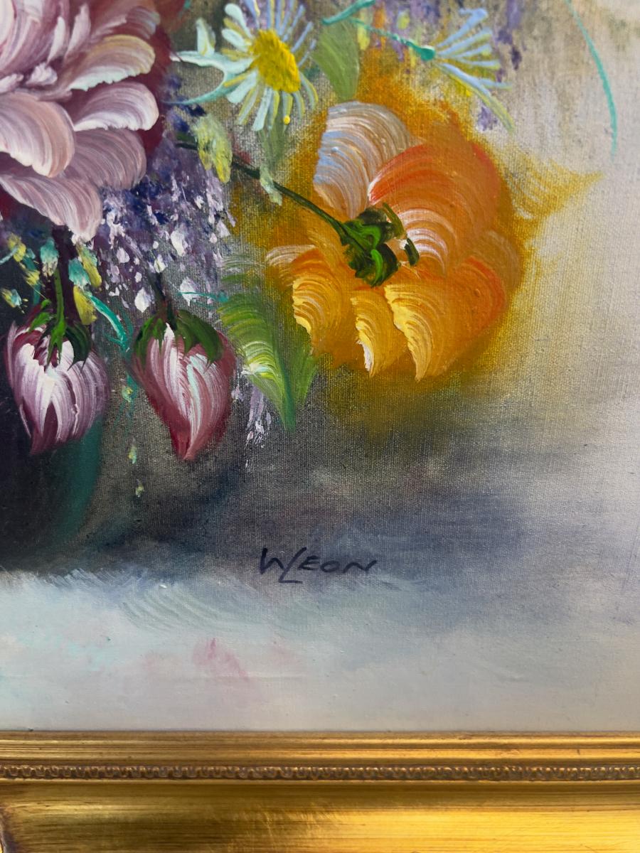 Still Life FLORAL on Canvas by W. Leon