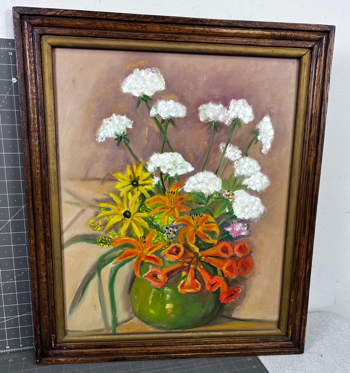 Still Life Oil on Board in An Antique Frame. Orange, White and Yellow