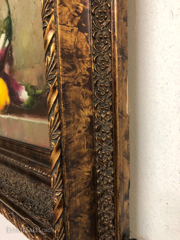 In excellent condition vintage oil painting still life, wood frame 26" by 22" overall.
