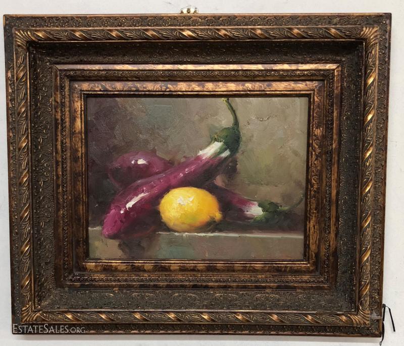 Still Life Oil Painting "Eggplant" Framed 26" by 22"