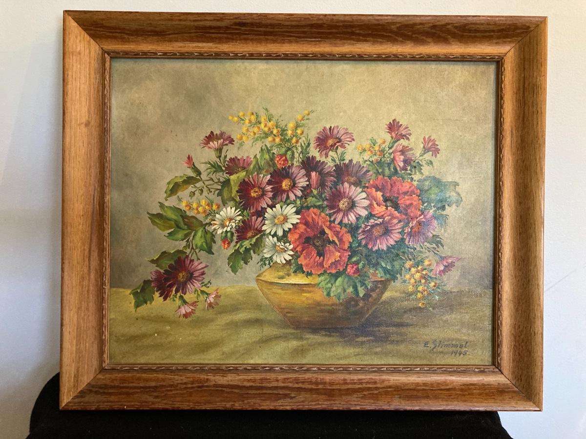 Still Life Vintage Oil Painting Signed STIMMEL 23”w x 19”h