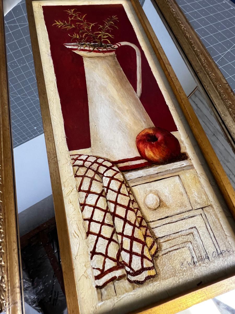 Still Life with Mirrored Frame Apple Pitcher NEW