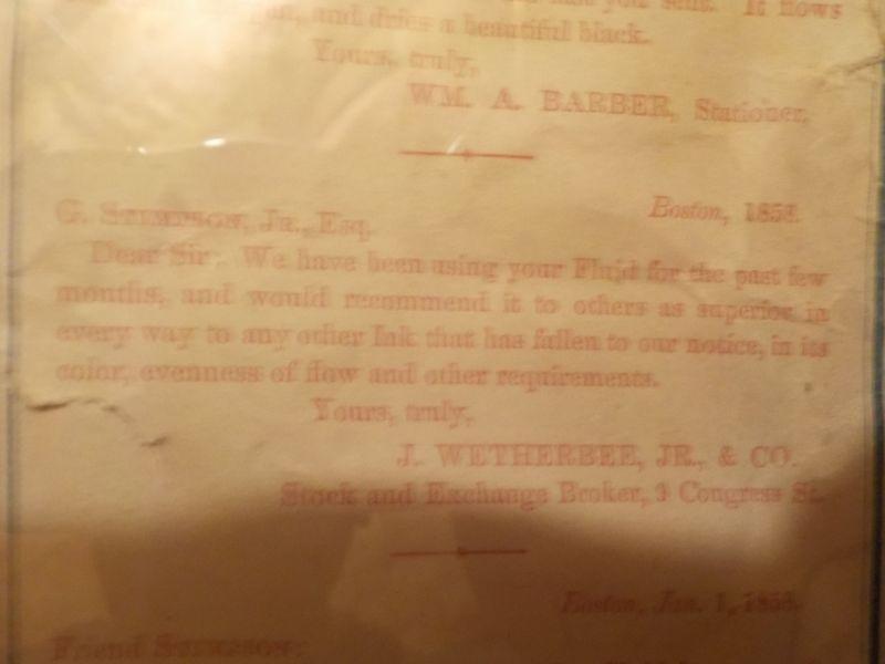 " Stimpson's Commercial Writing Fluid". approx. 1850's.