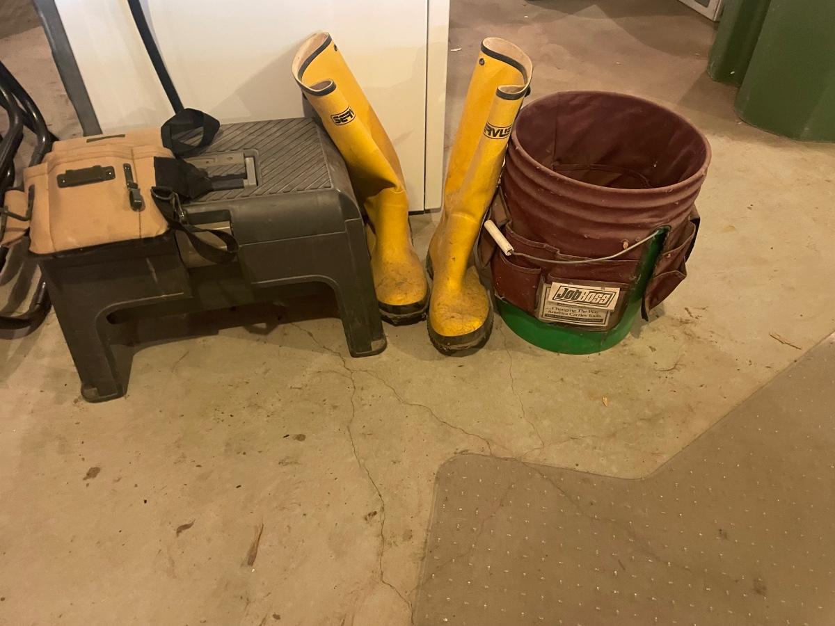Stiol tool box pale tool box, rubber boots and small tool pouch