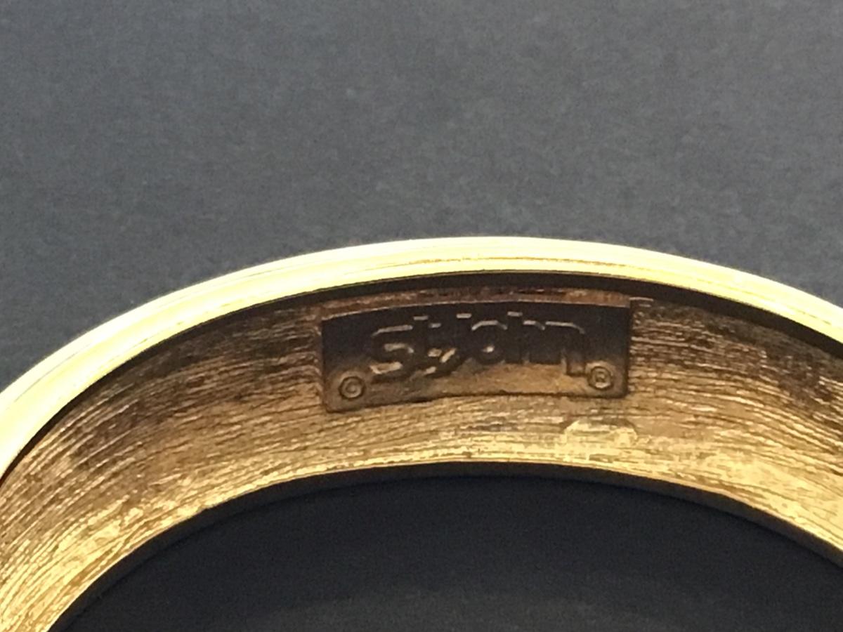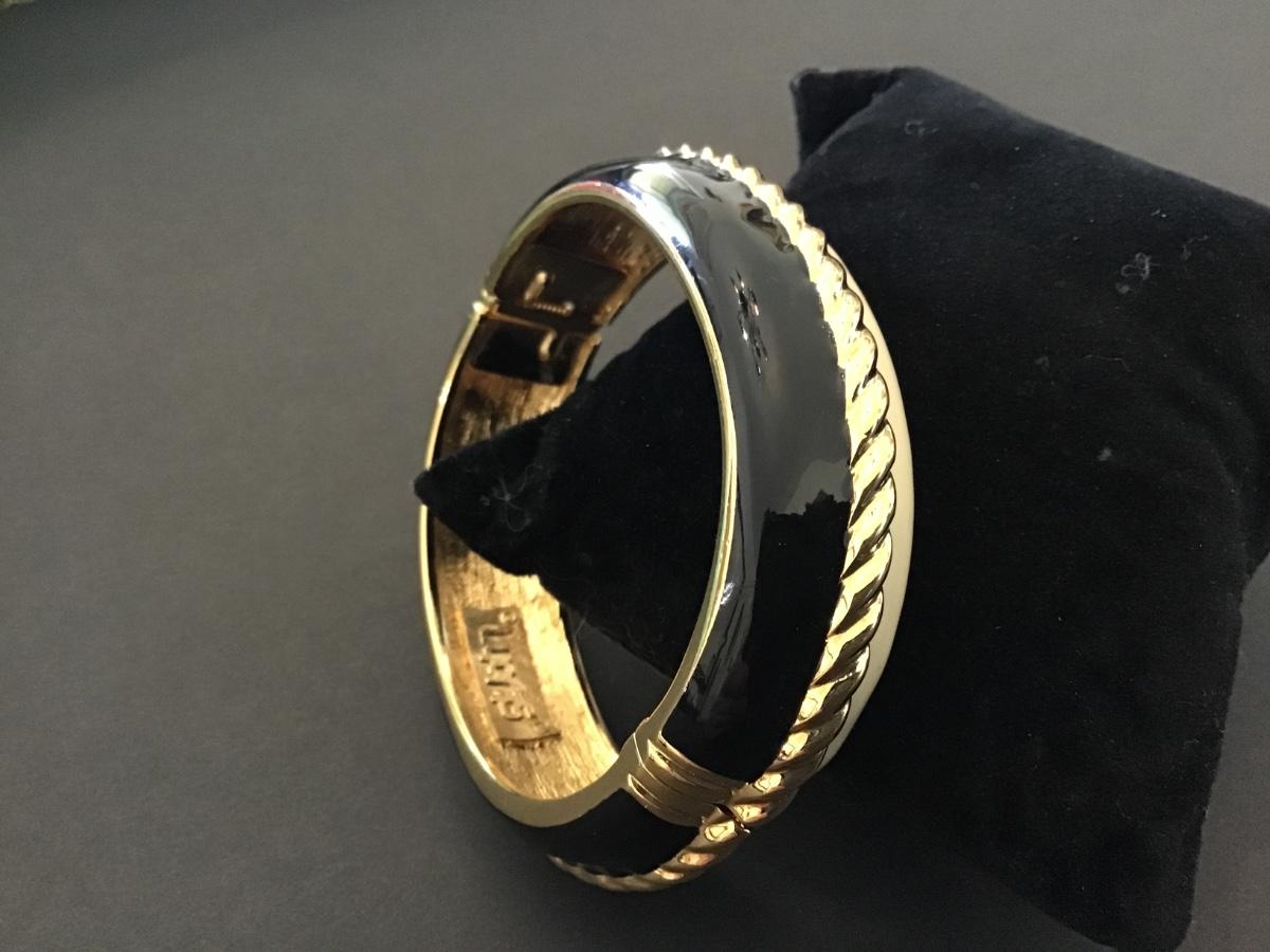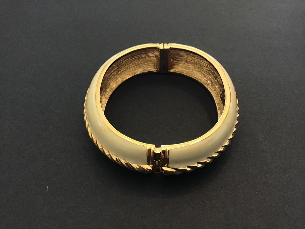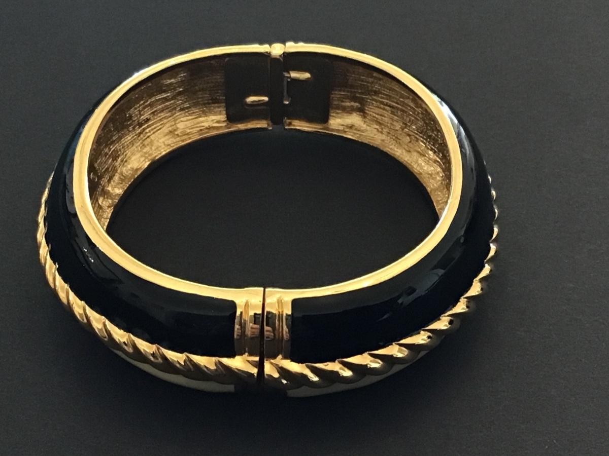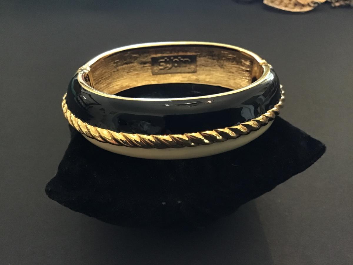 StJohn Beautiful Cream Black Gold Tone Cuff Hinged Excellent