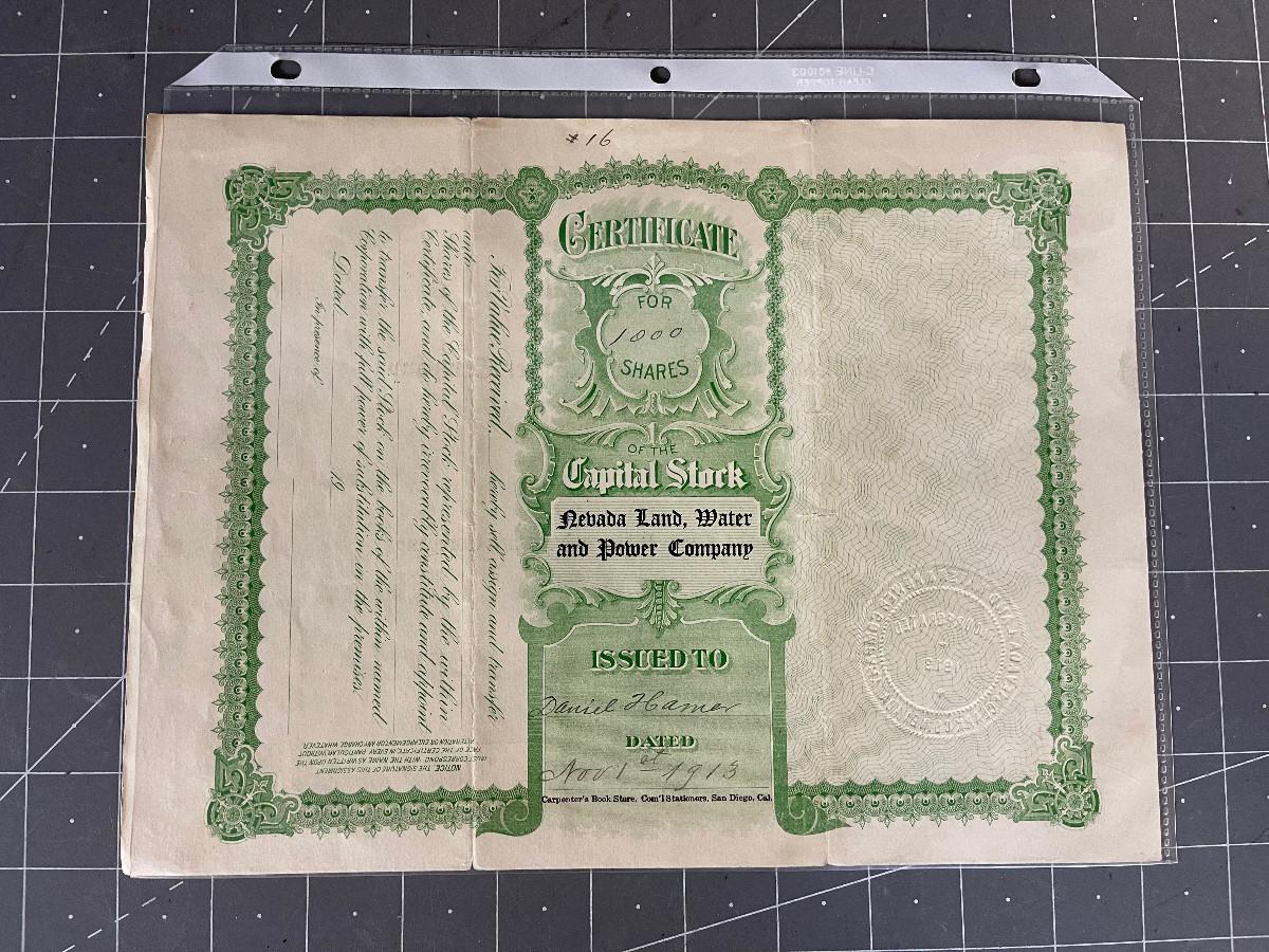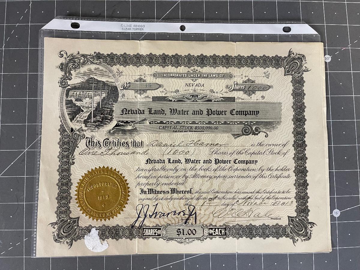 Stock Certificates Nevada Land, Water & Power Co.