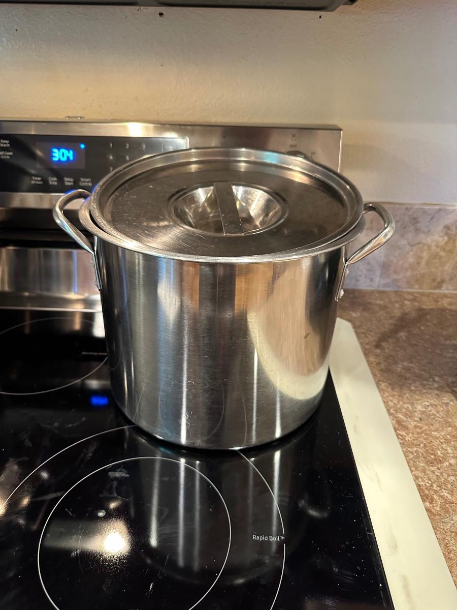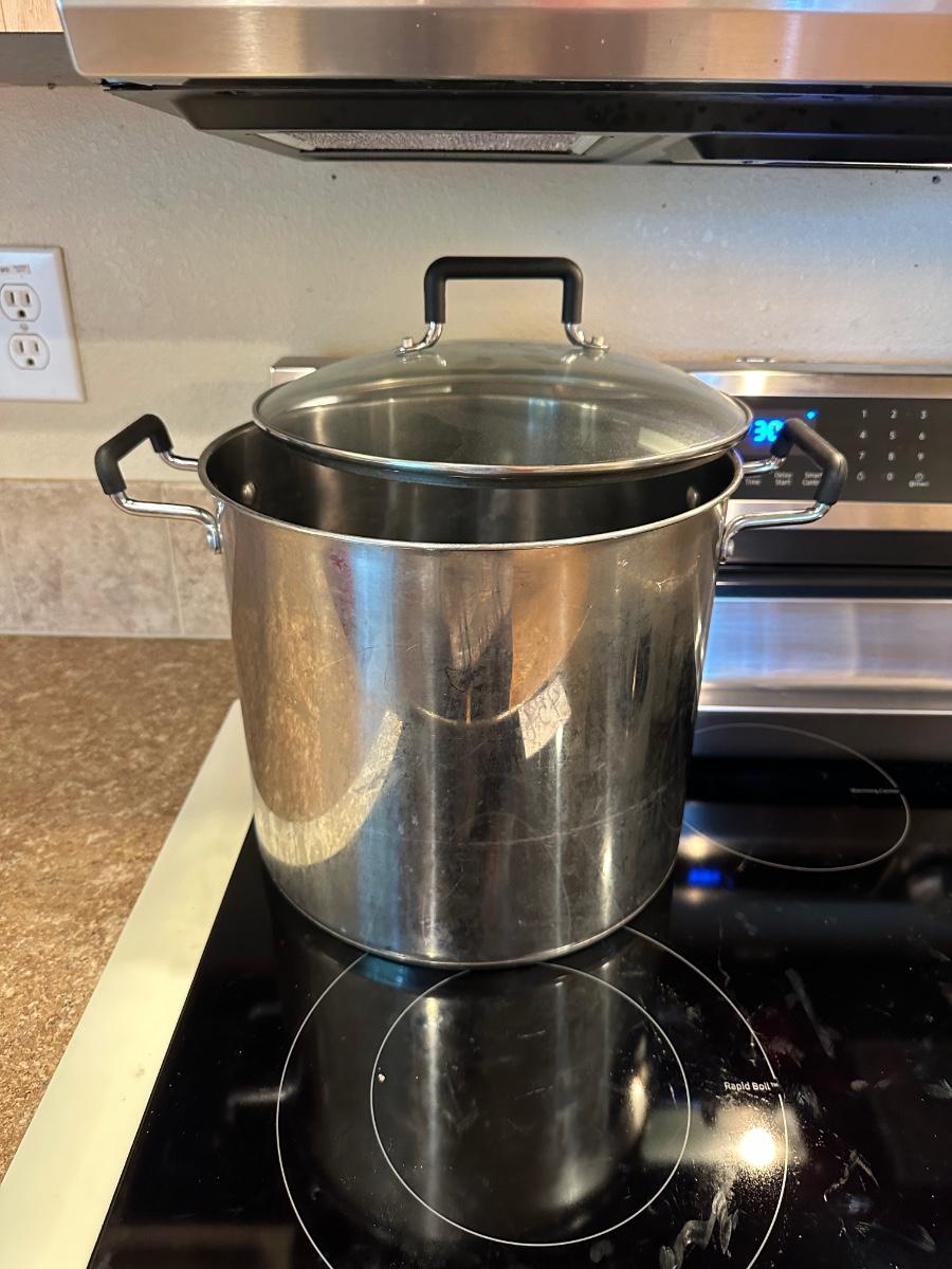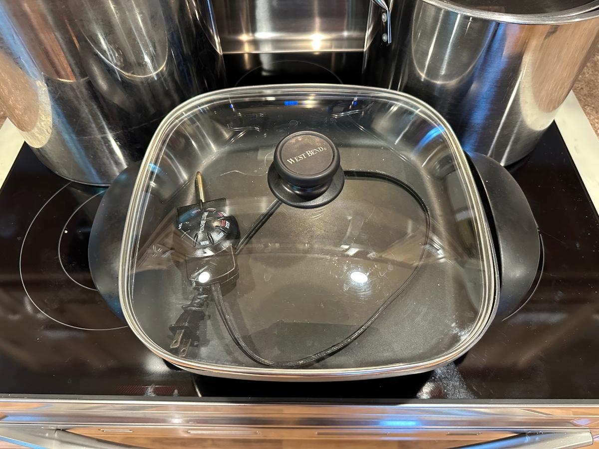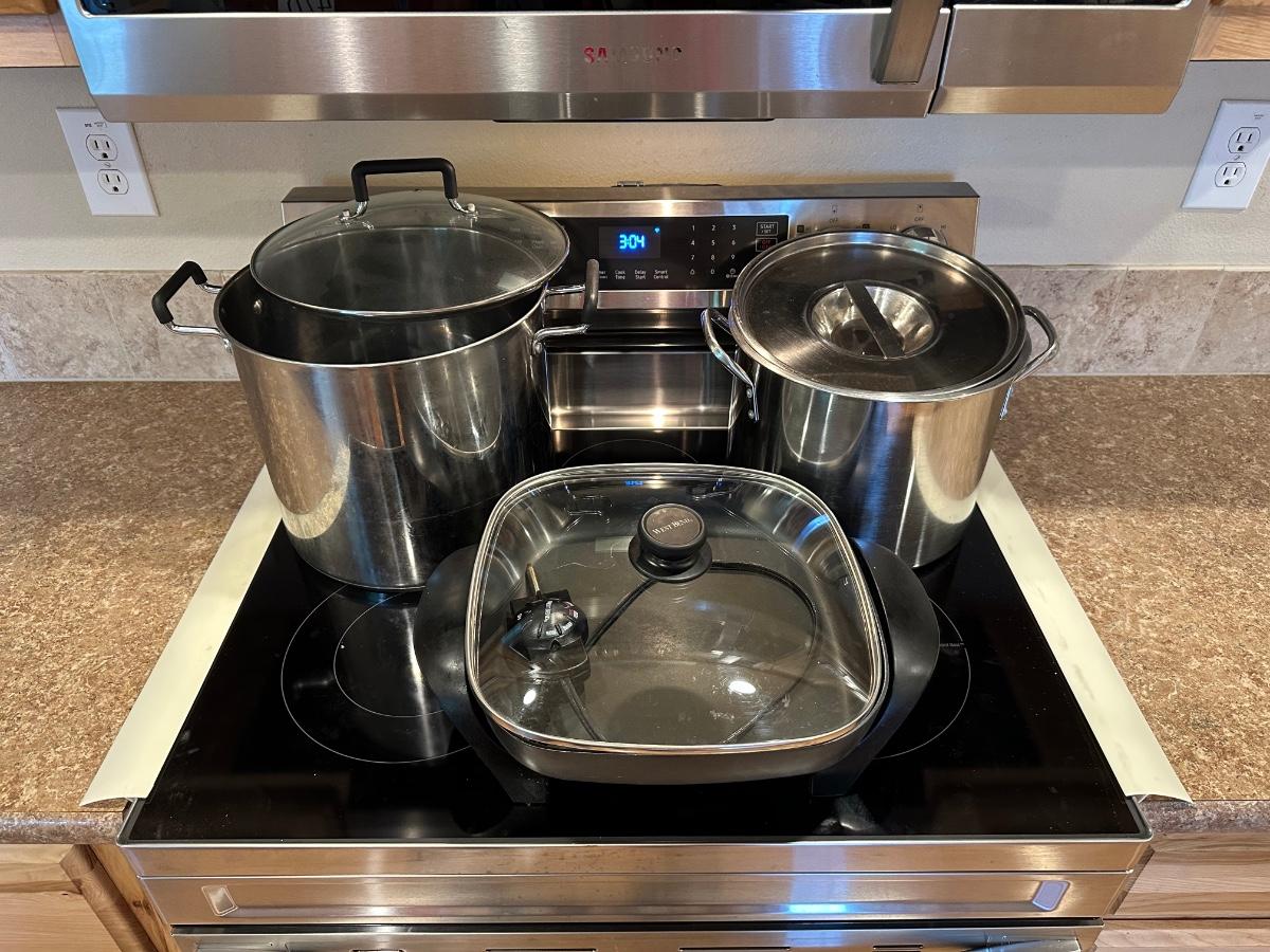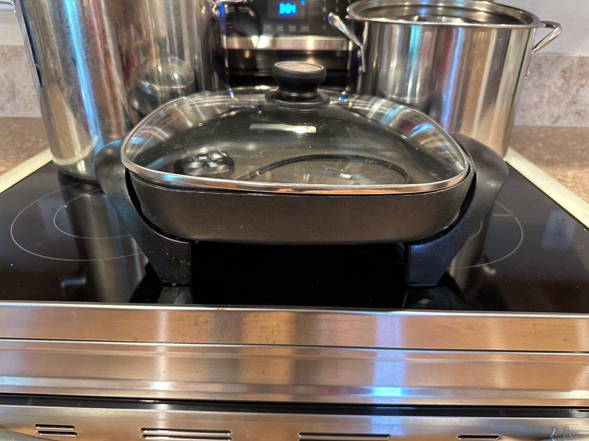 STOCK POTS AND AN ELECTRIC FRYING PAN