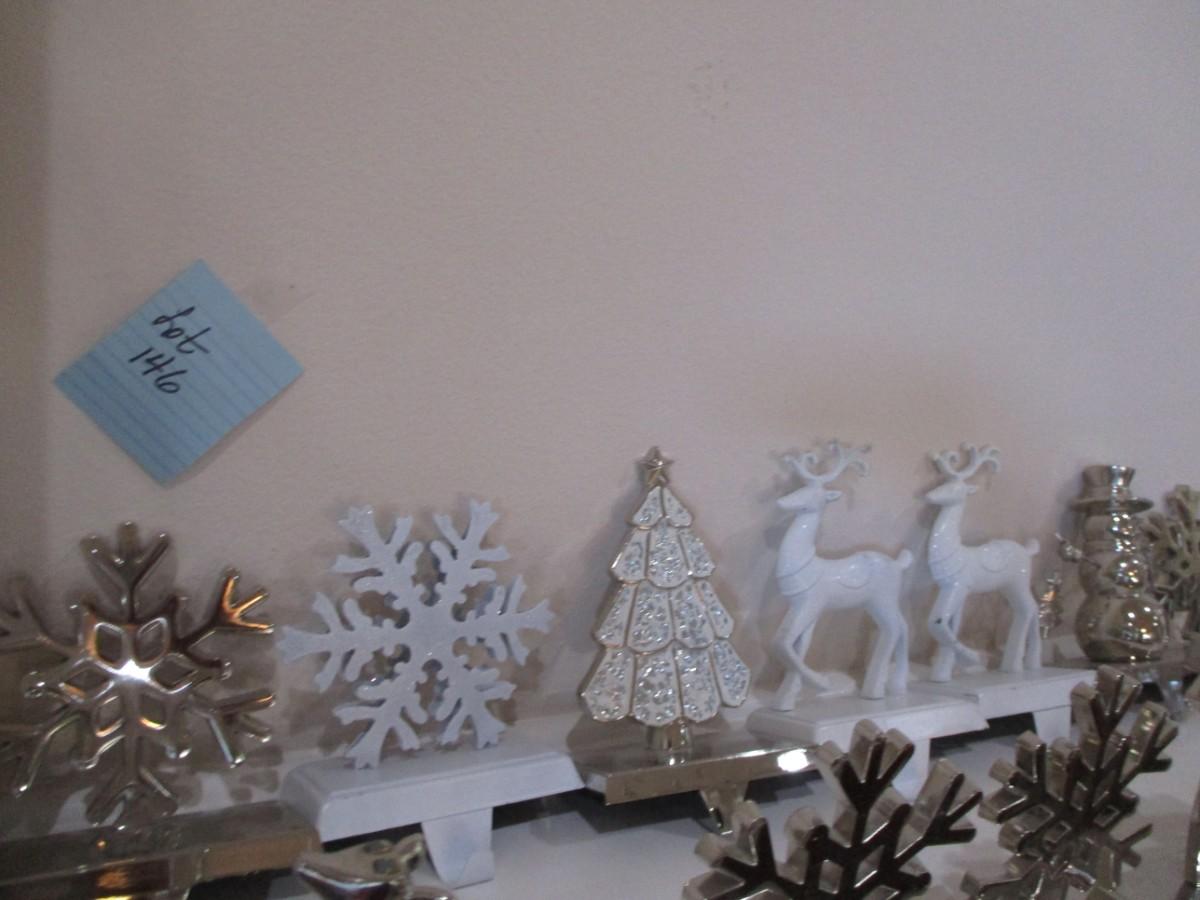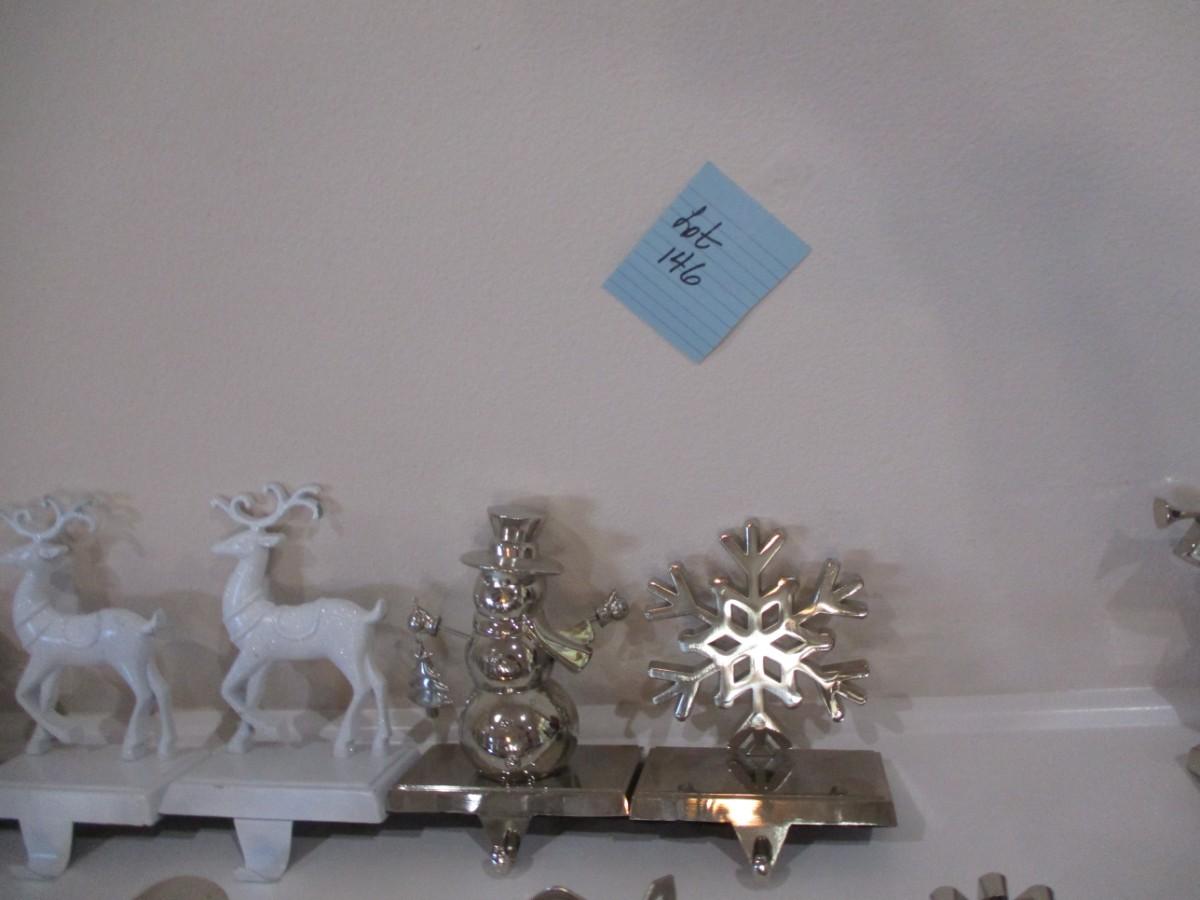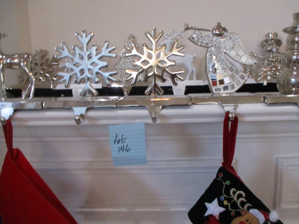3 stockings. Silver stocking holders. Great conditon