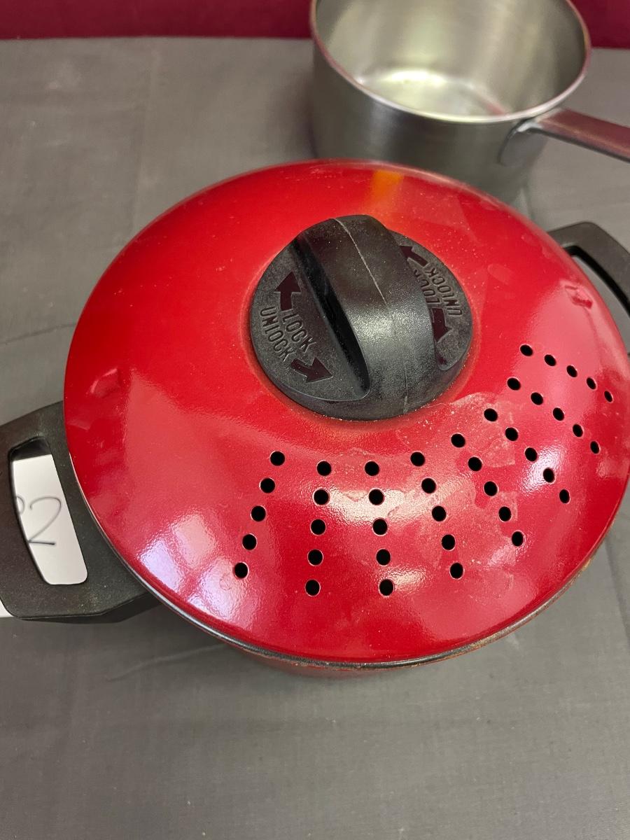 Stockpot and cute red drainage pot