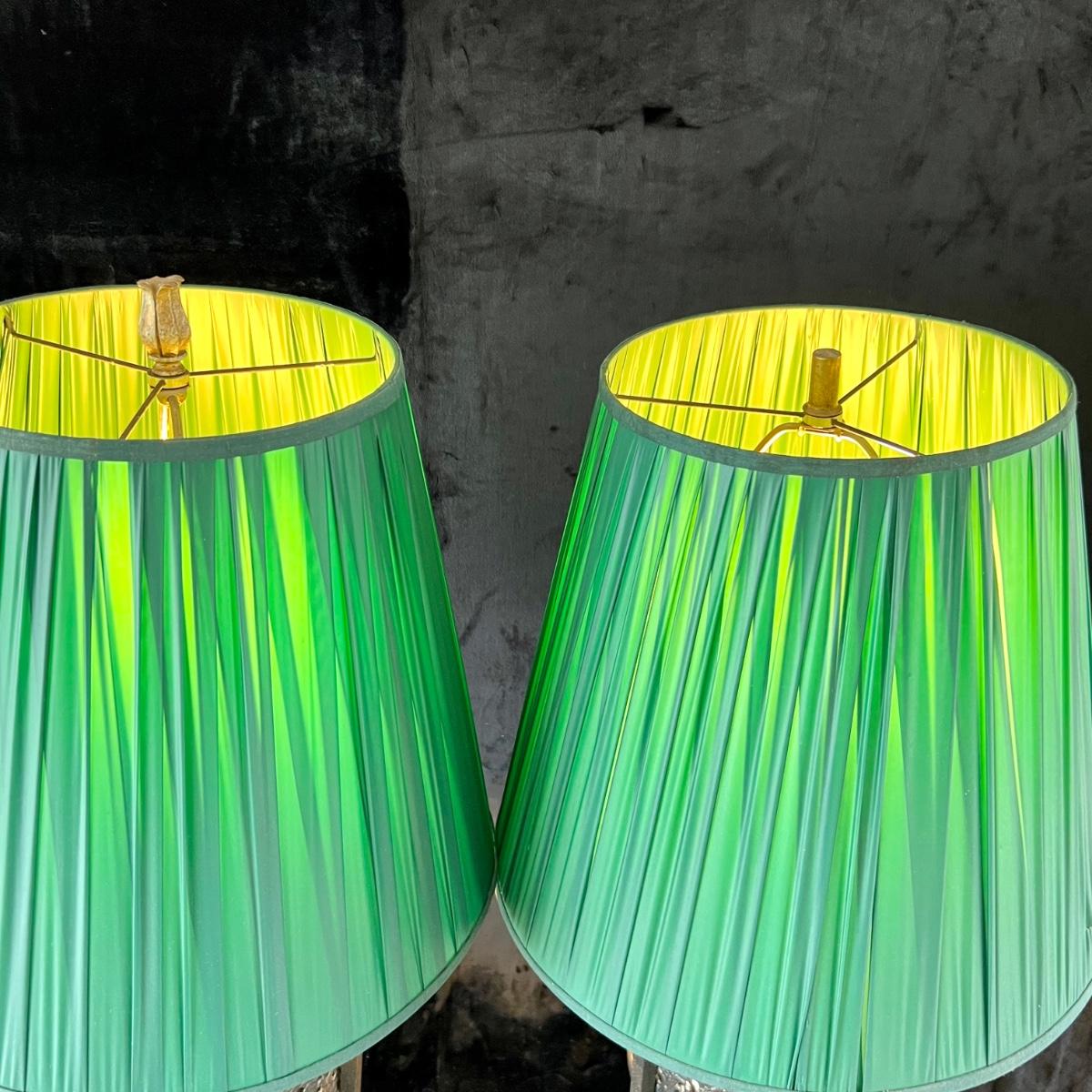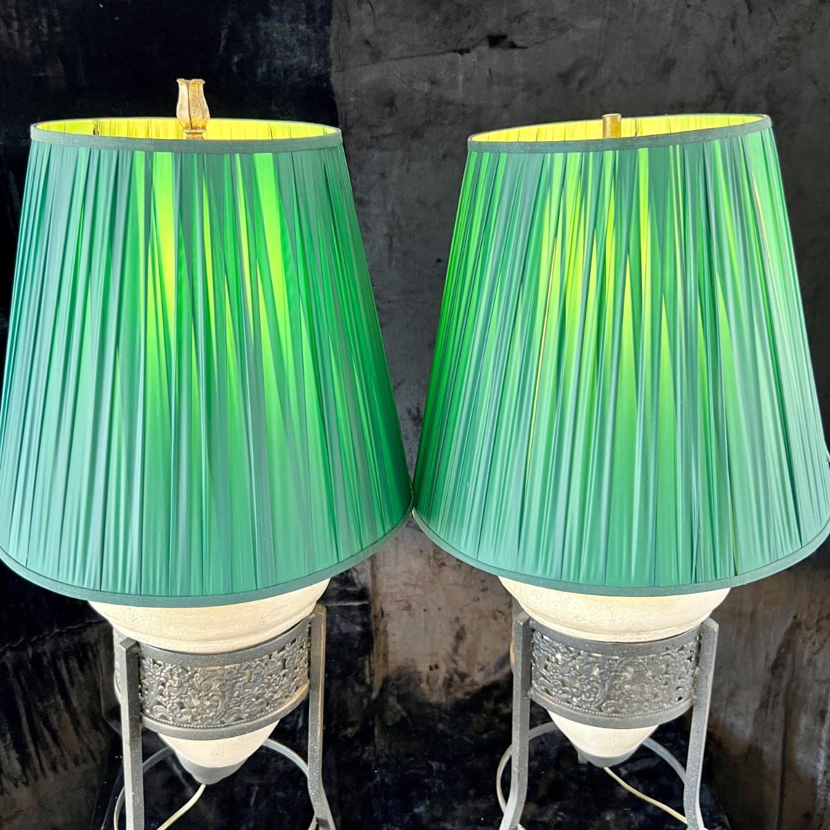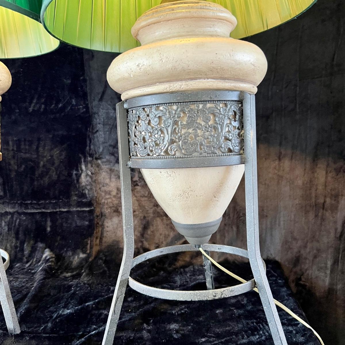 Stone and Metal Lamps with Green Shades. (LR-JM)