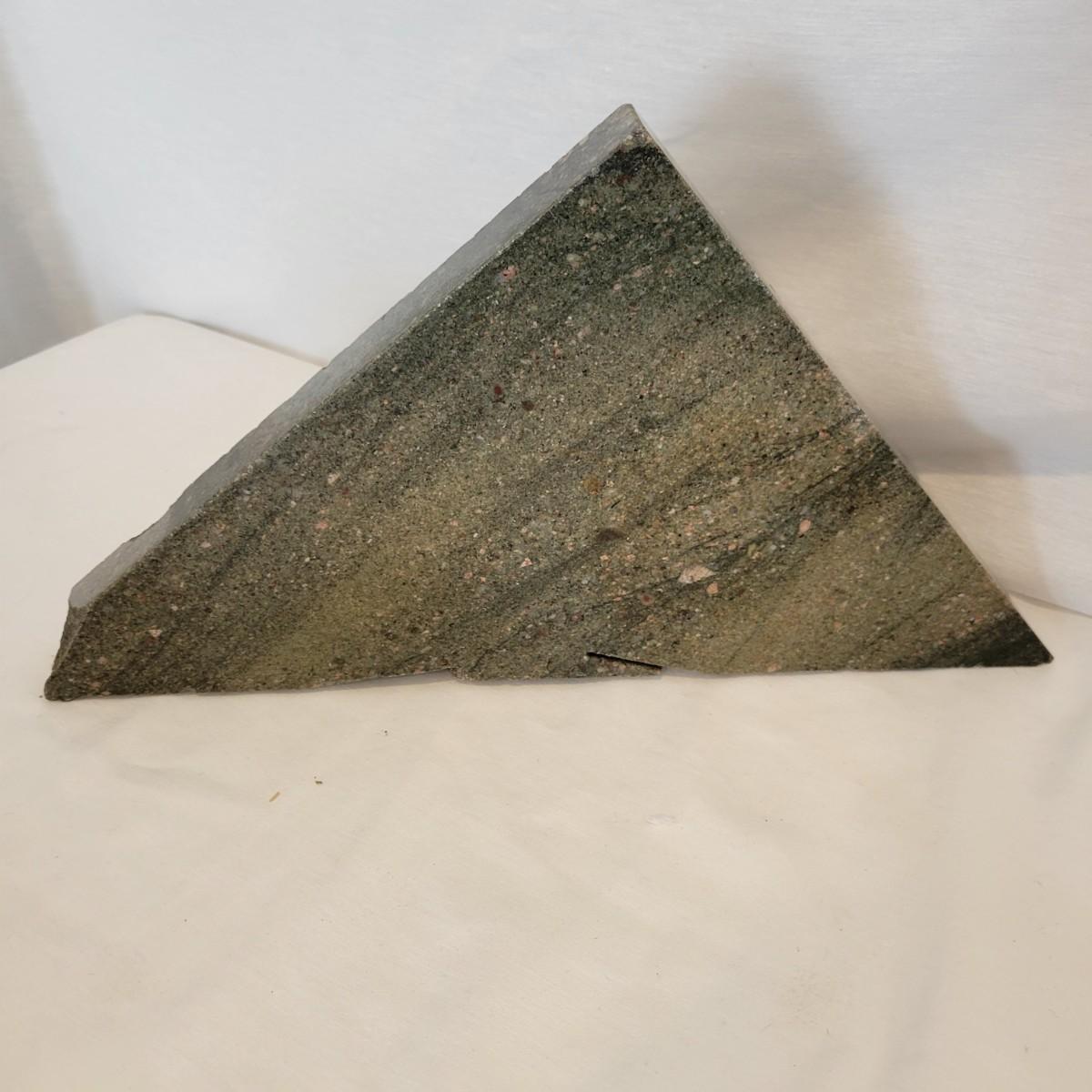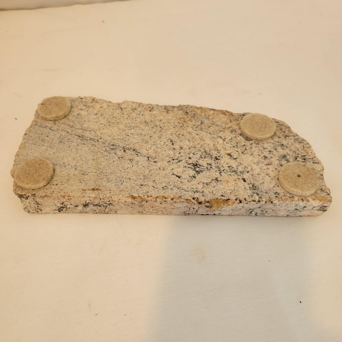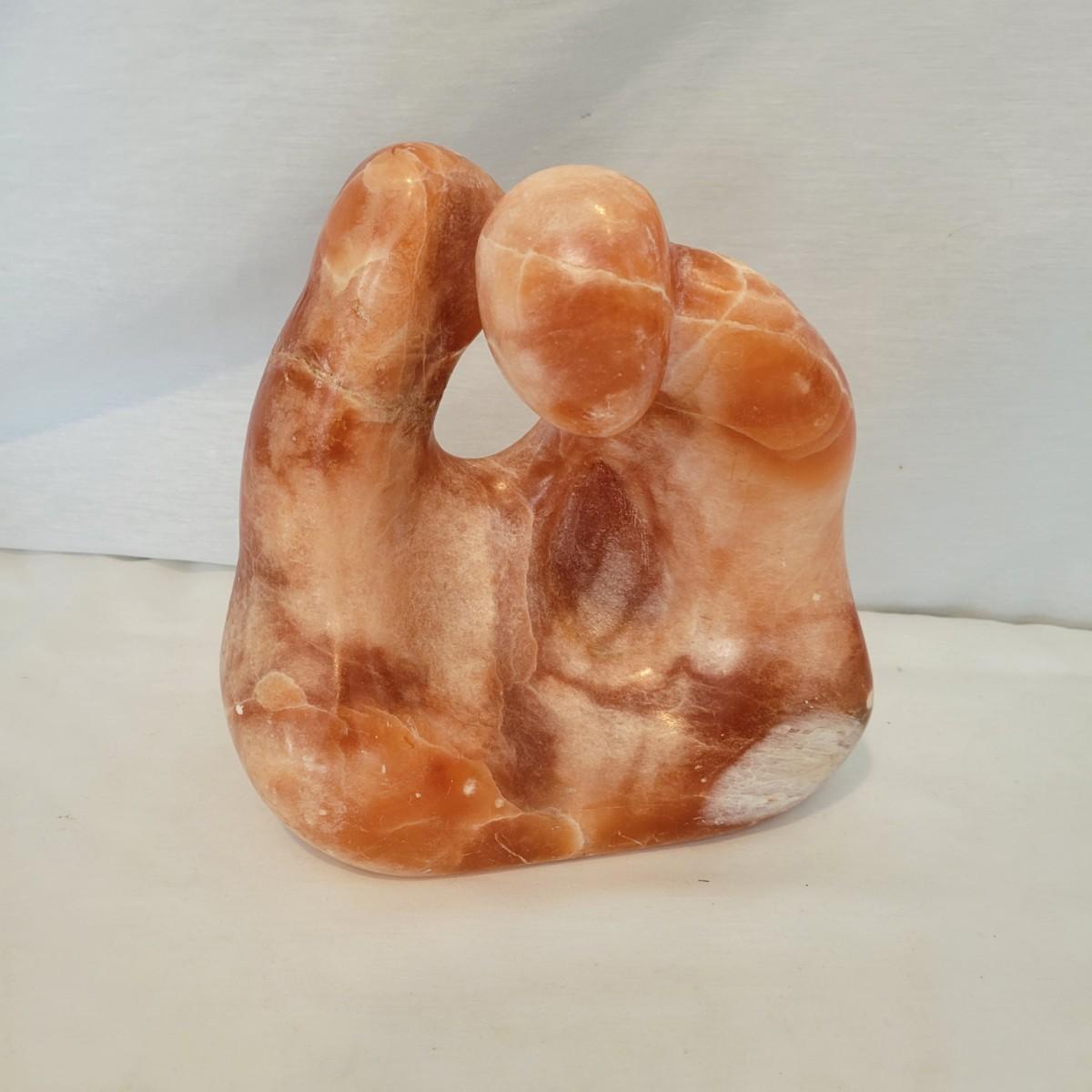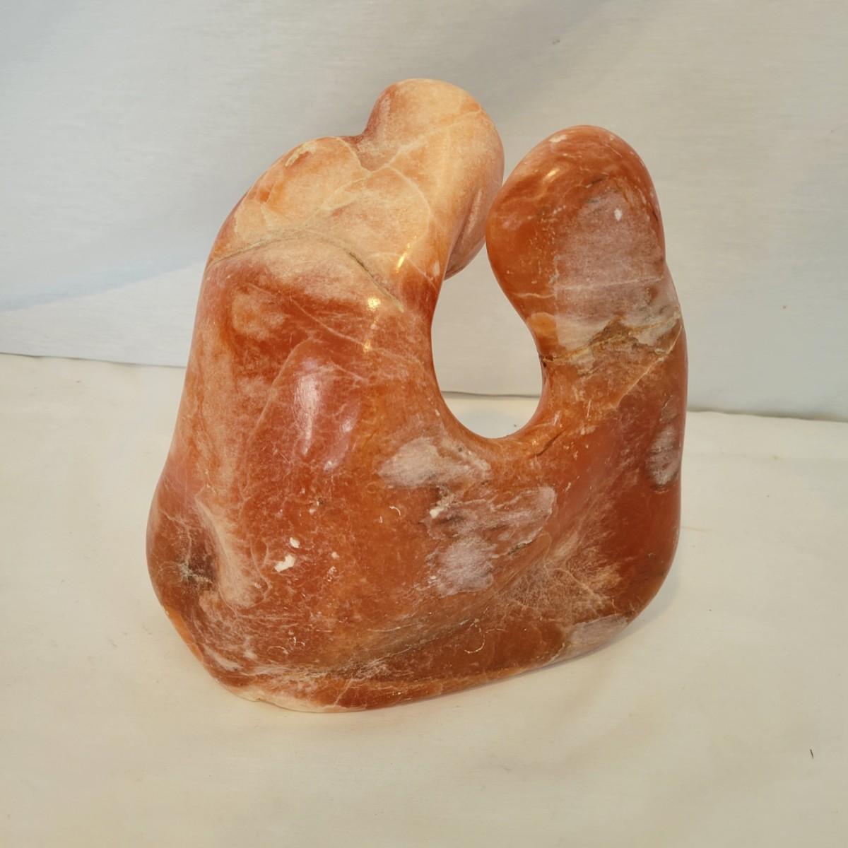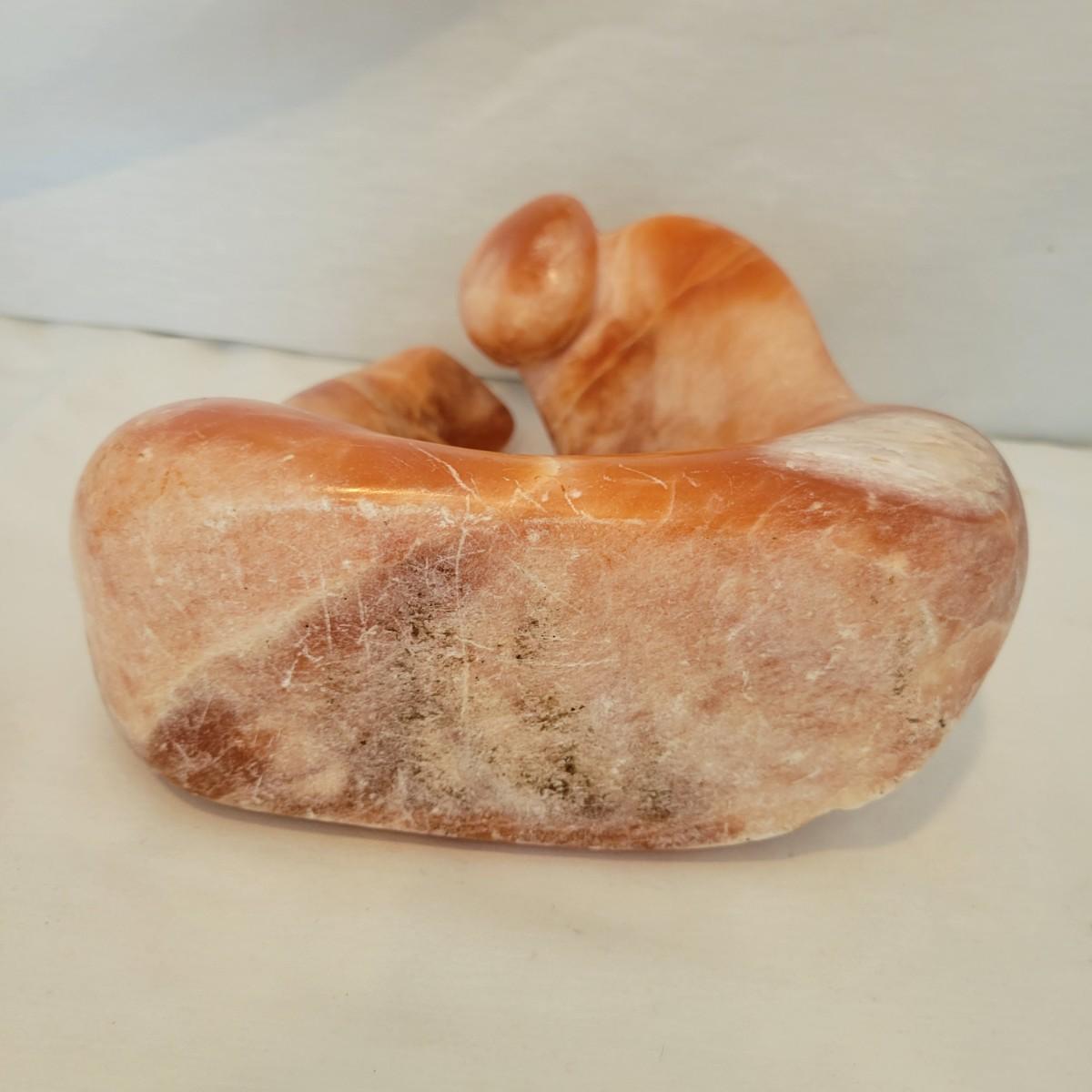 A pinkish orange modern stone carving that measures approximately 7.5" x 3.5" x 8"H. Also included is a letter opener and a stone that both appear to be lapis and four granite trivets. There is also a piece of what appears to be petrified wood, but isn't confirmed. Shipping available.
