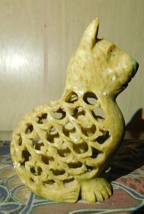 Stone Cat Carved within a Cat. This is a single piece of stone that has another cat carved inside the exterior cat.