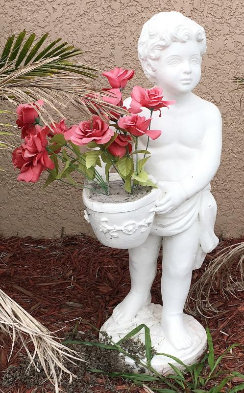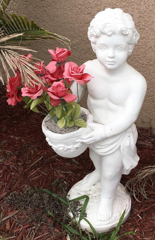 Stone Child Statue with Pot