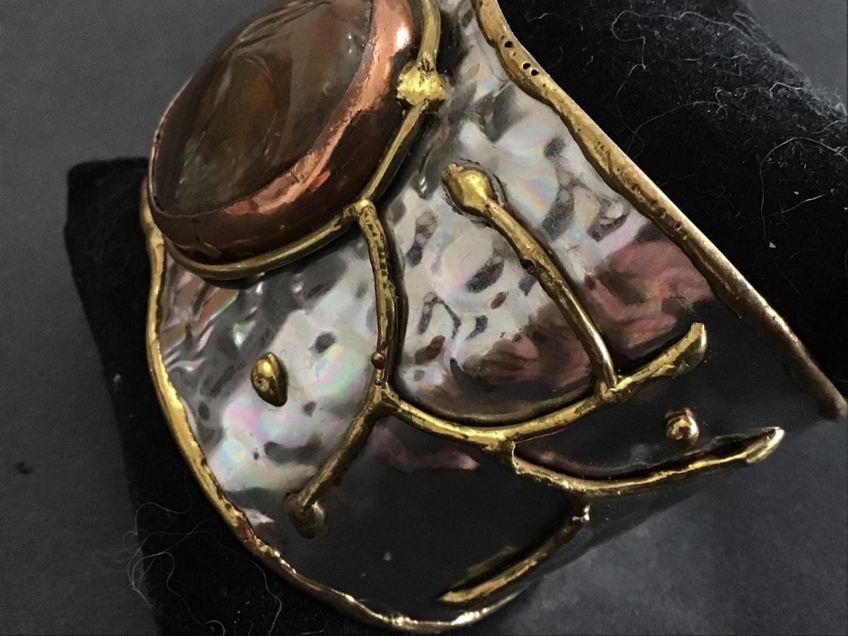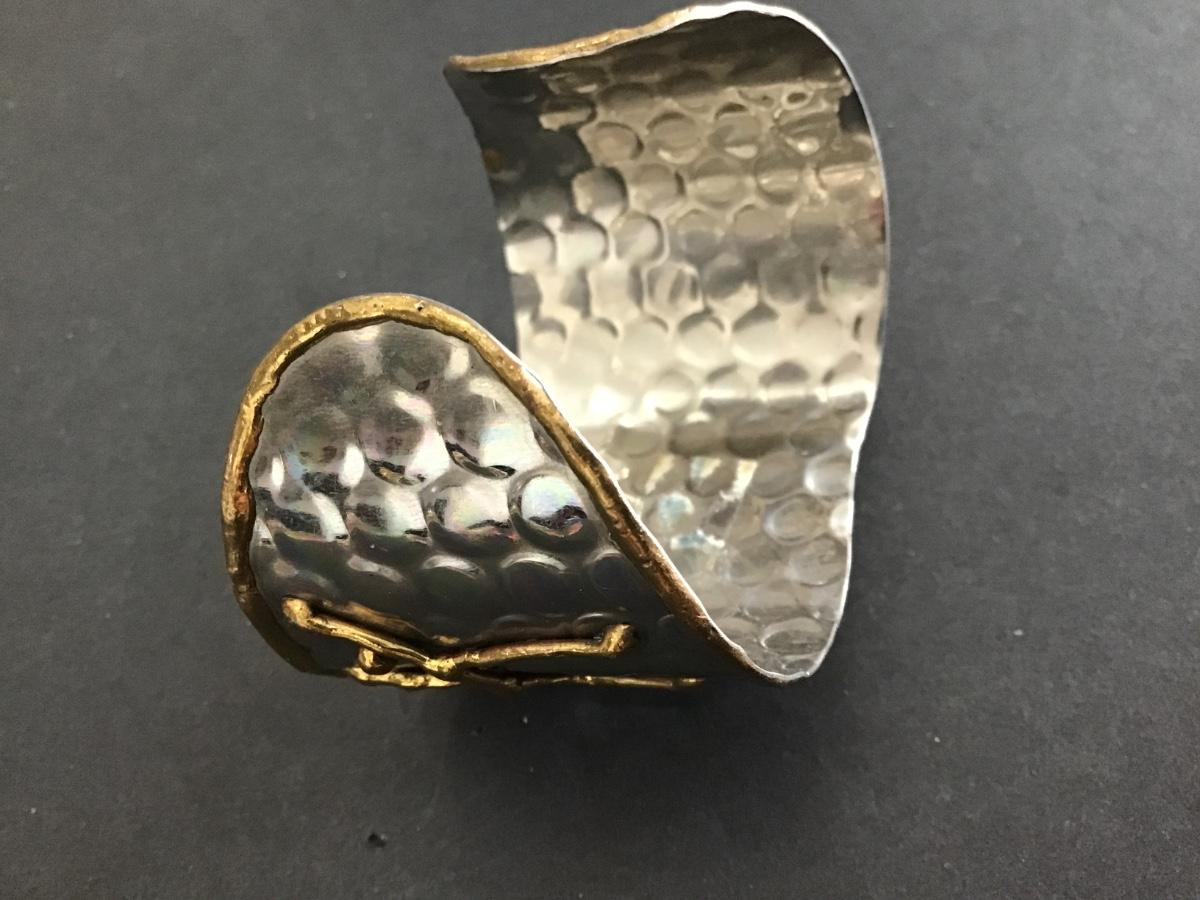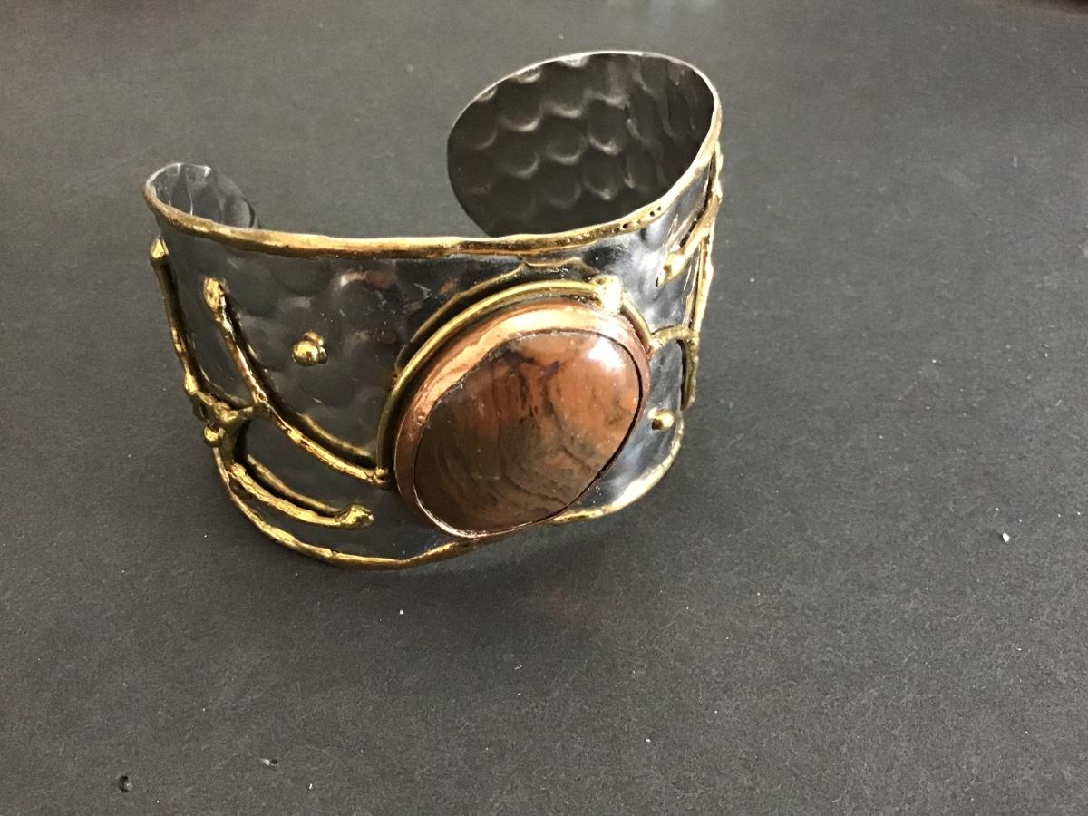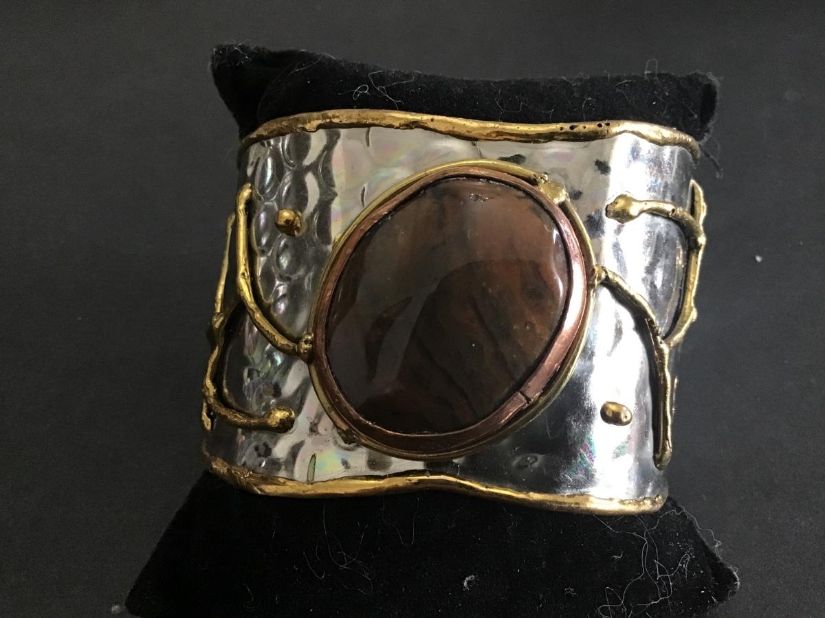 Stone Cuff Bracelet Silver Tone Raised Gold Tone