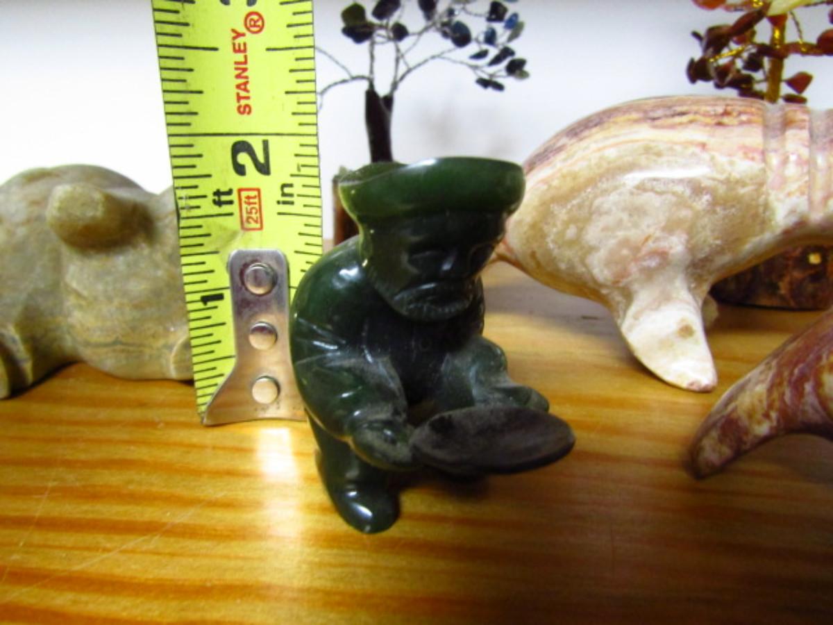 Stone Home Decor- Carved Figurines and Polished Gem 'Trees'. Asian male figure is made of jade (per owner).