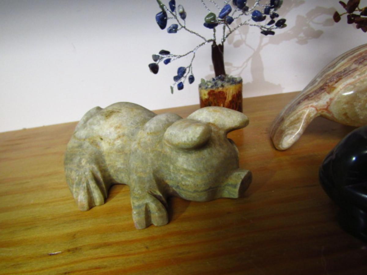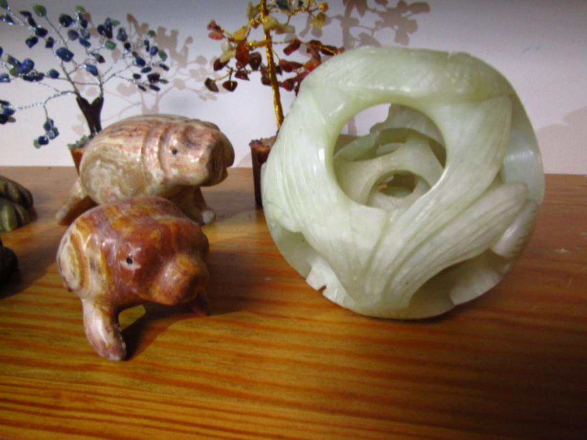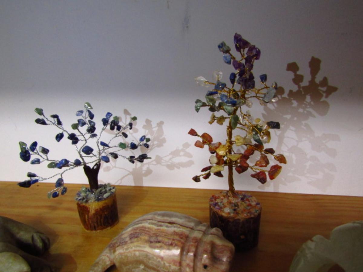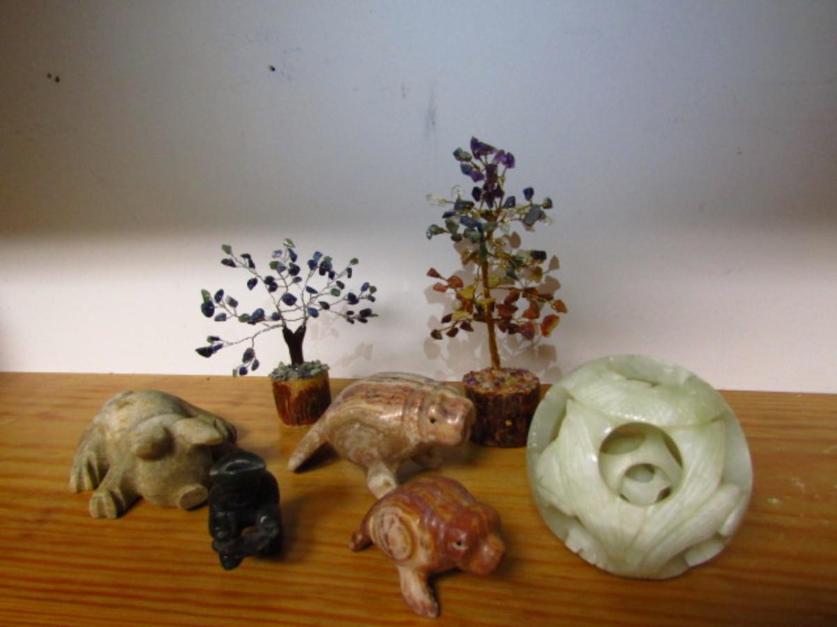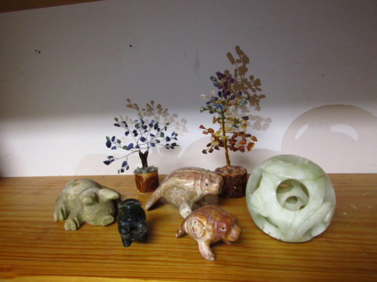 Stone Home Decor- Carved Figurines and Polished Gem 'Trees'