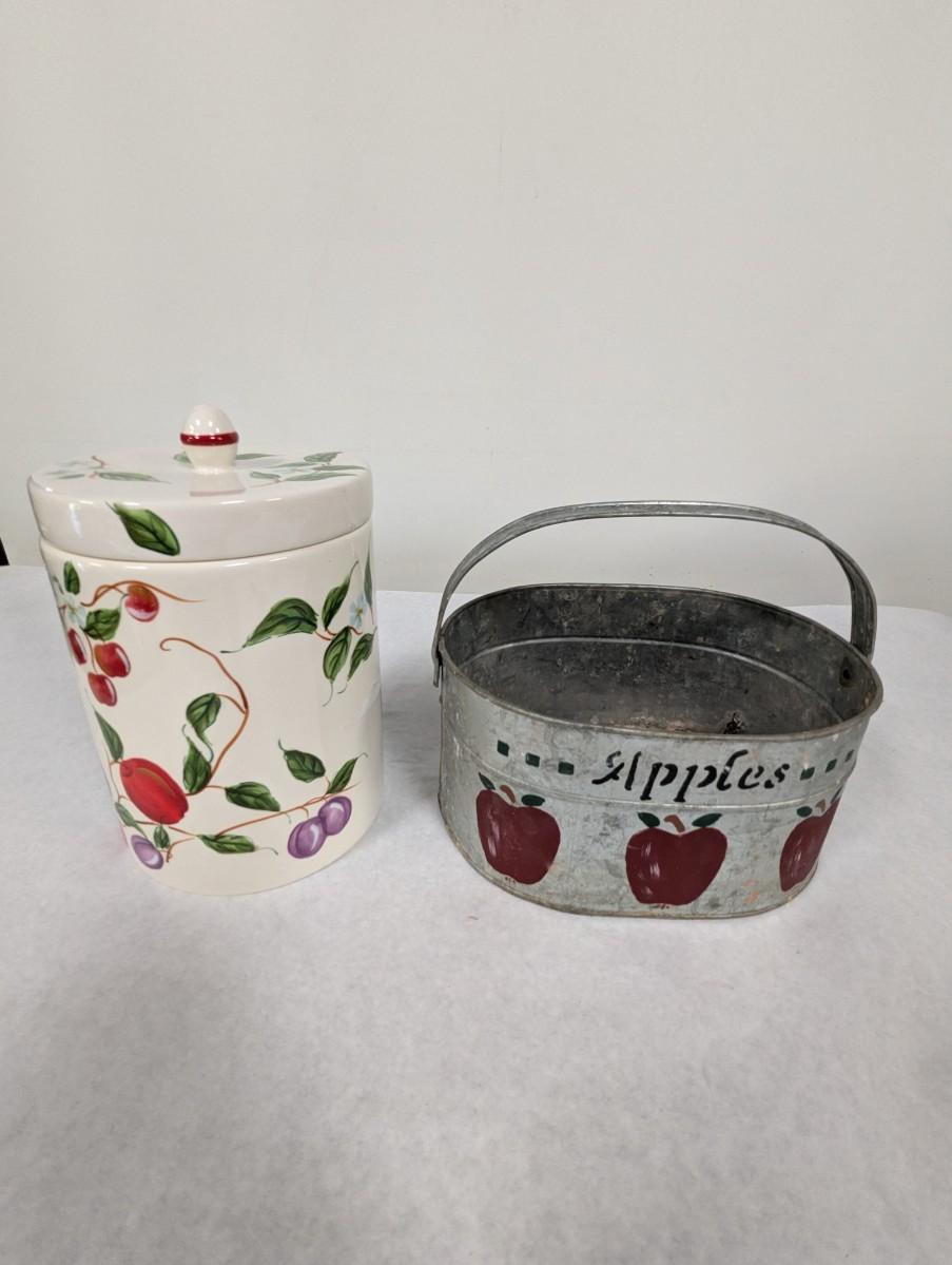 Stone Lite Floral & Fruit Canister & Steel Apple Pail