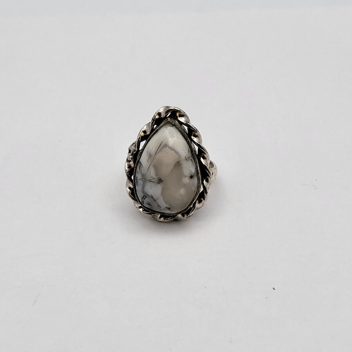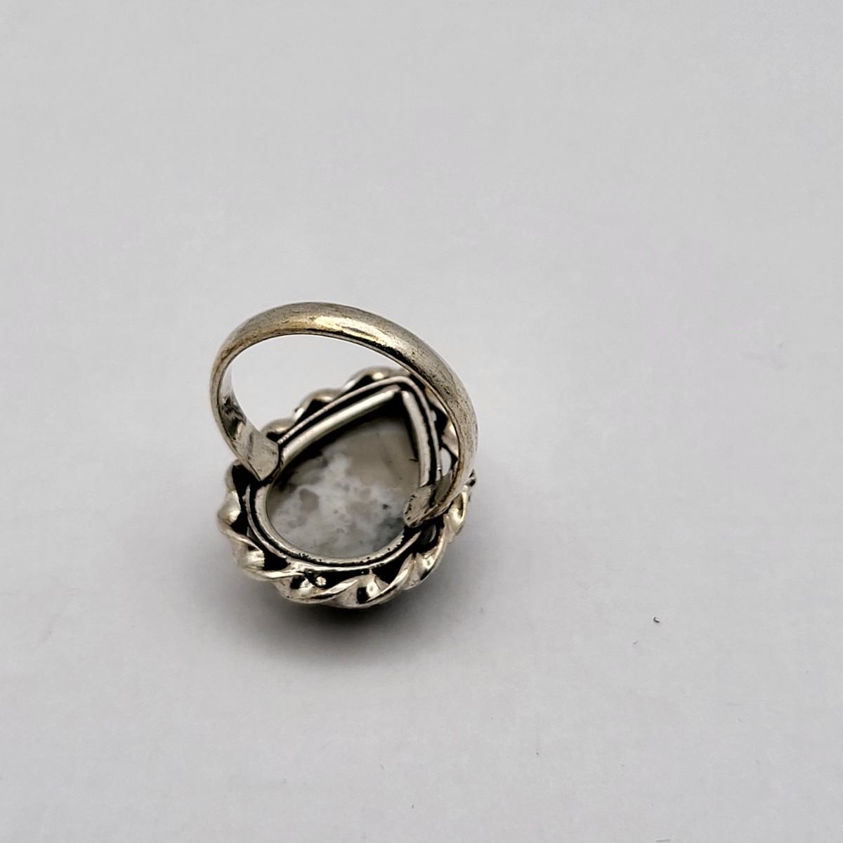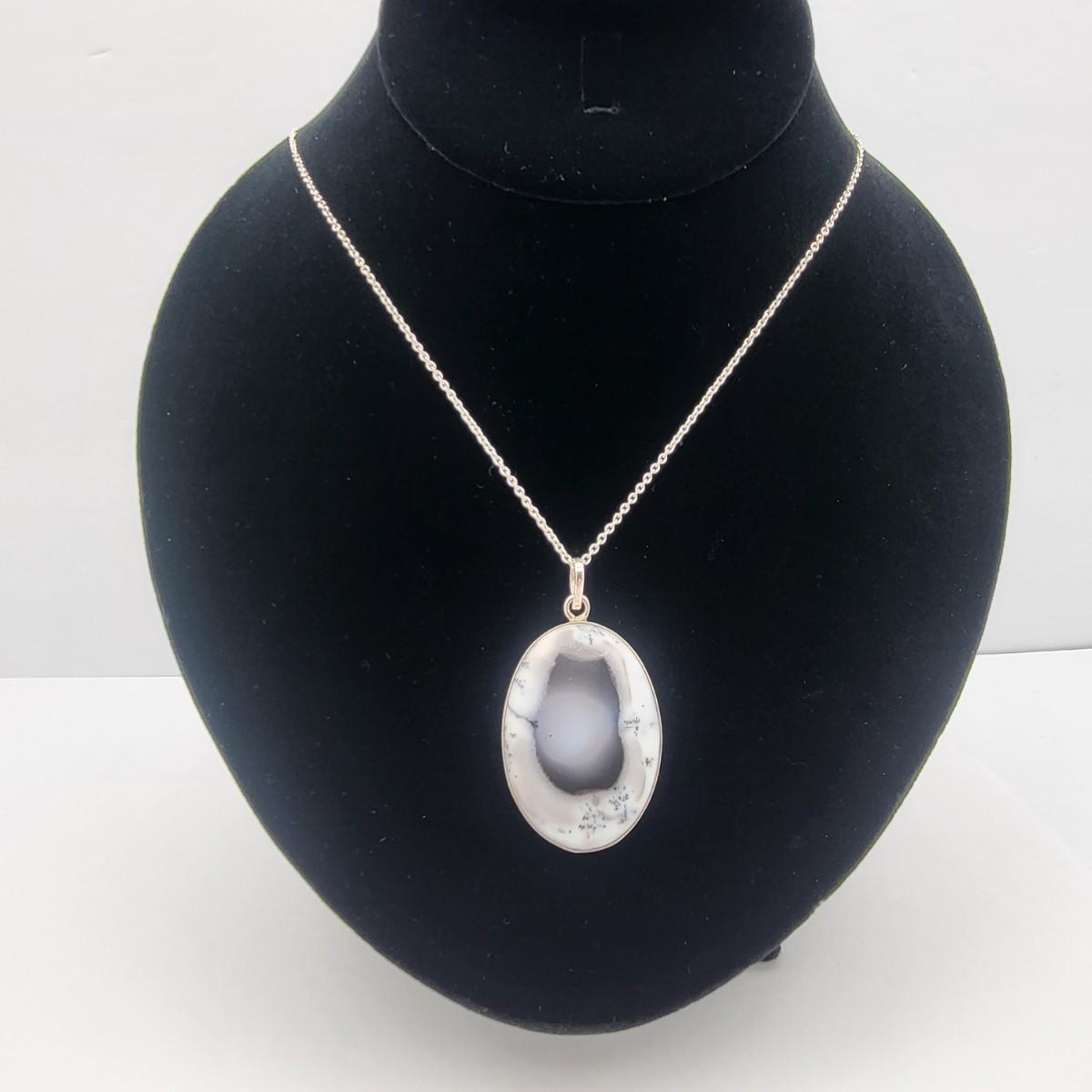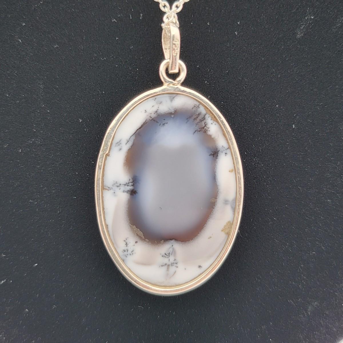 Dentritic agate necklace & ring. Necklace 2.5" x 1.25" including bale. It is on a 17" SS 925 chain. Pear shape ring is a size 6.5