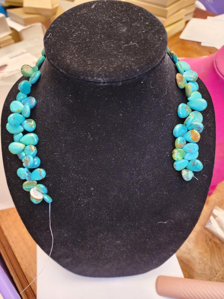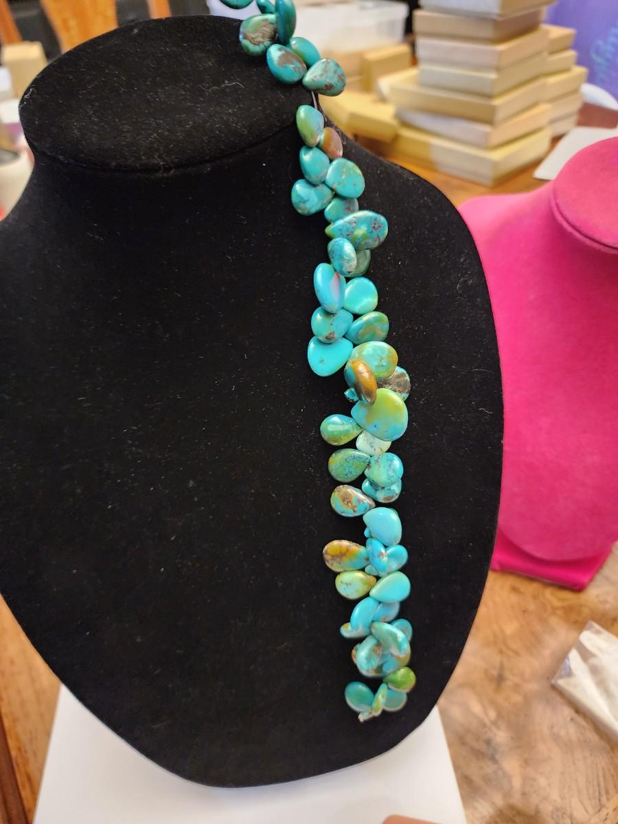 This necklace was broken at latches but cpuld have new ends put on. Heavy stone.