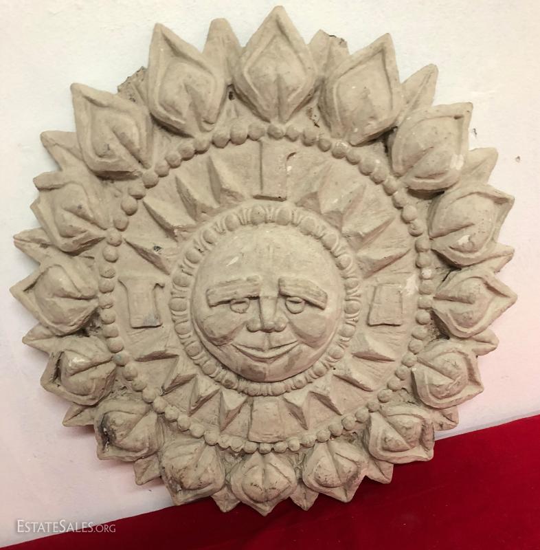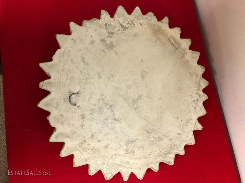 Plaque measures 18" in diameter, some damage,. Sold as-is.