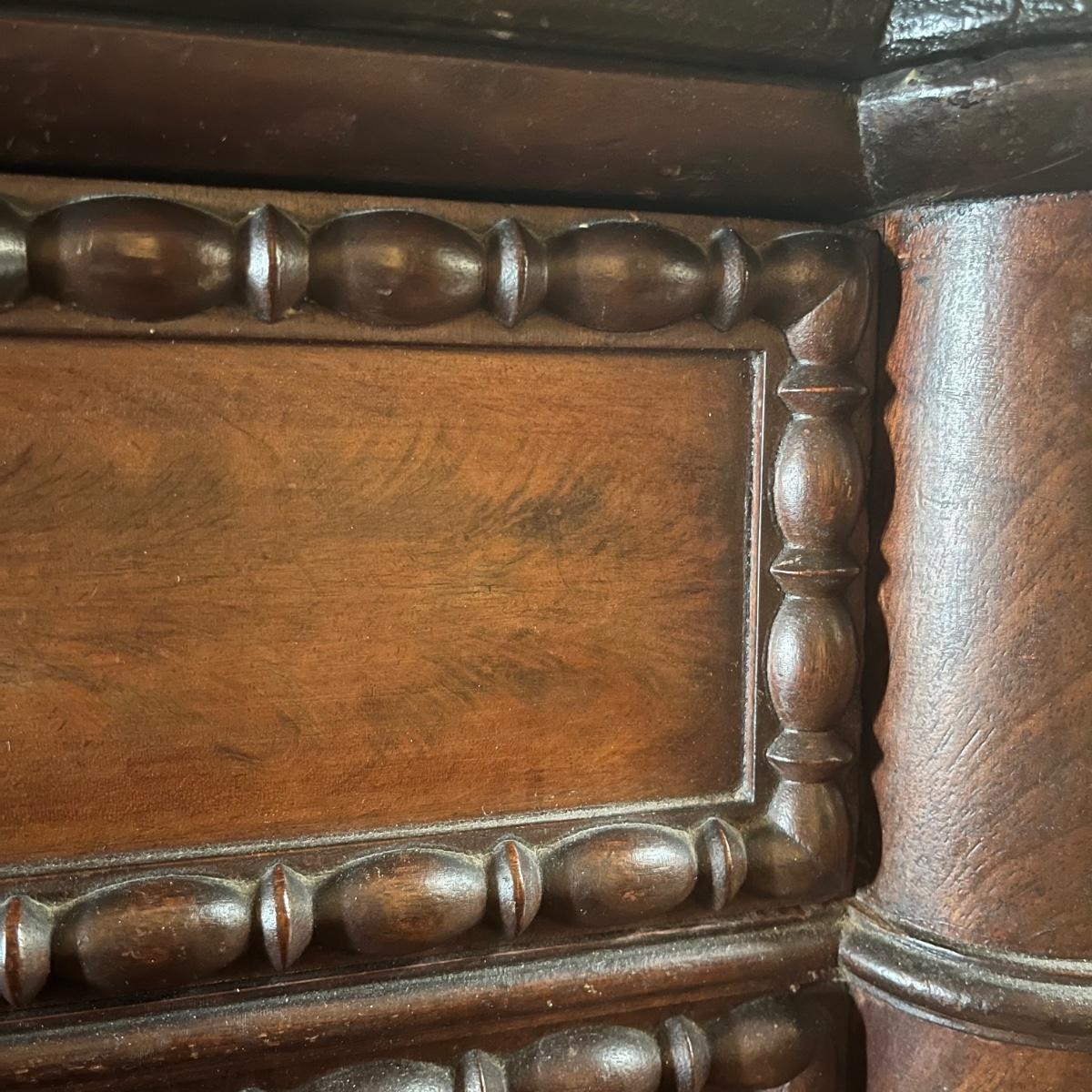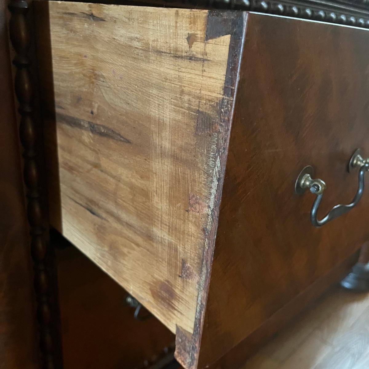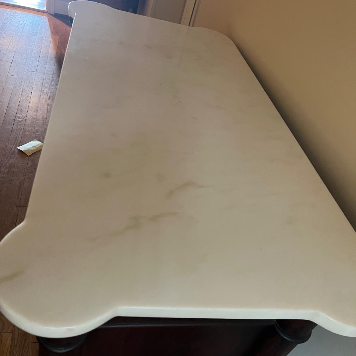 Lot includes a antique marble top chest of drawers with four dovetailed drawer. Chest is a walnut colored wood with the marble top being removable. Chest measures 23” x 46.5” x 36”. The winning bidder will need to bring assistance to move and load item due to it's size and/or weight.