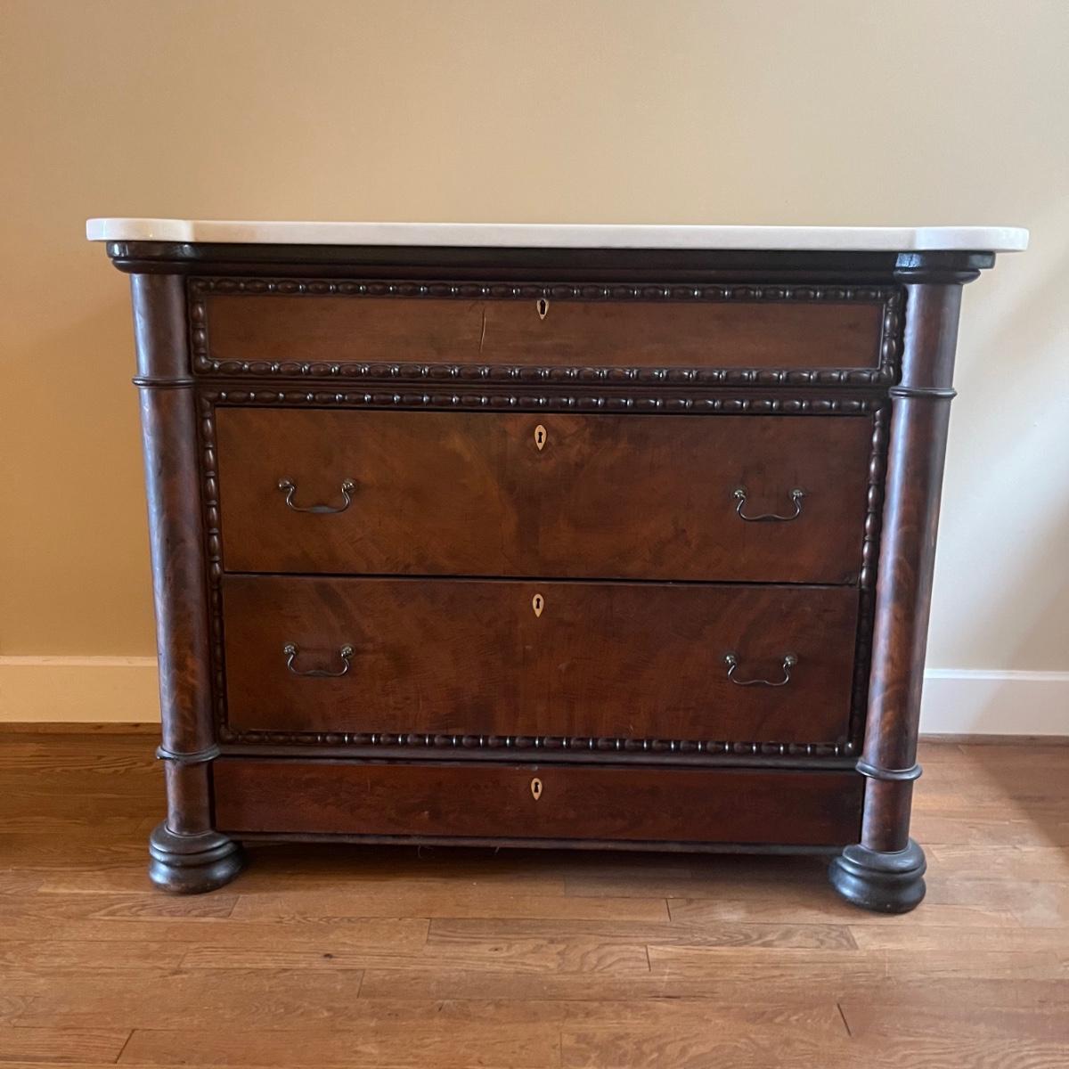 Marble Top Four Drawer Antique Chest of Drawers (B1-MG)
