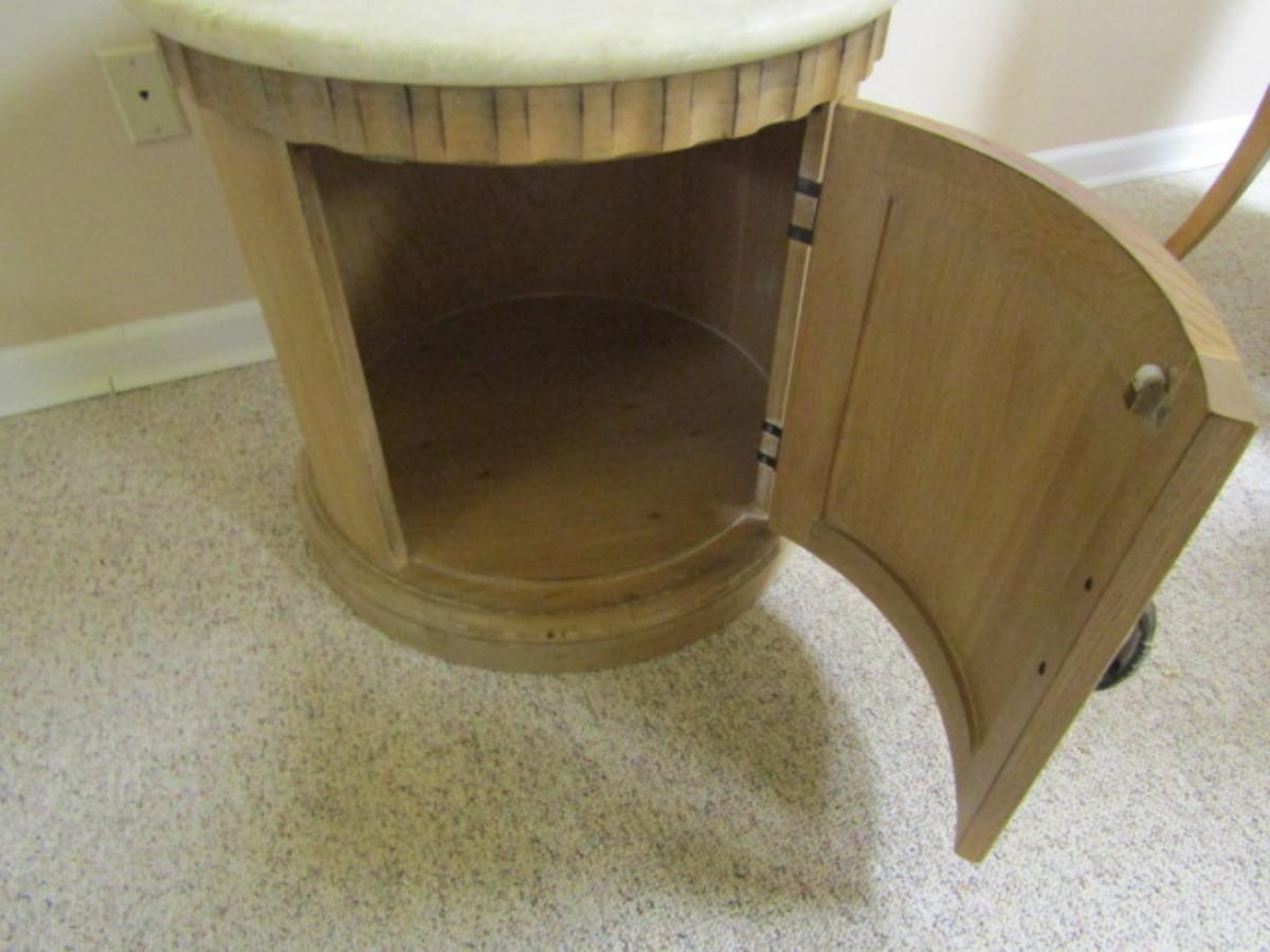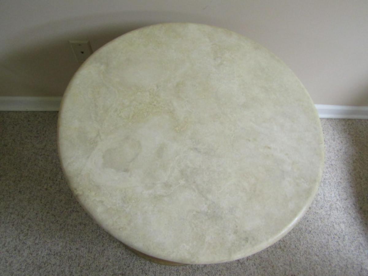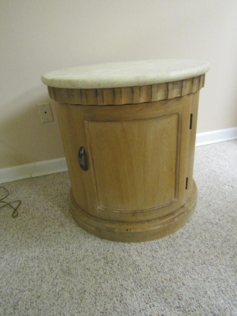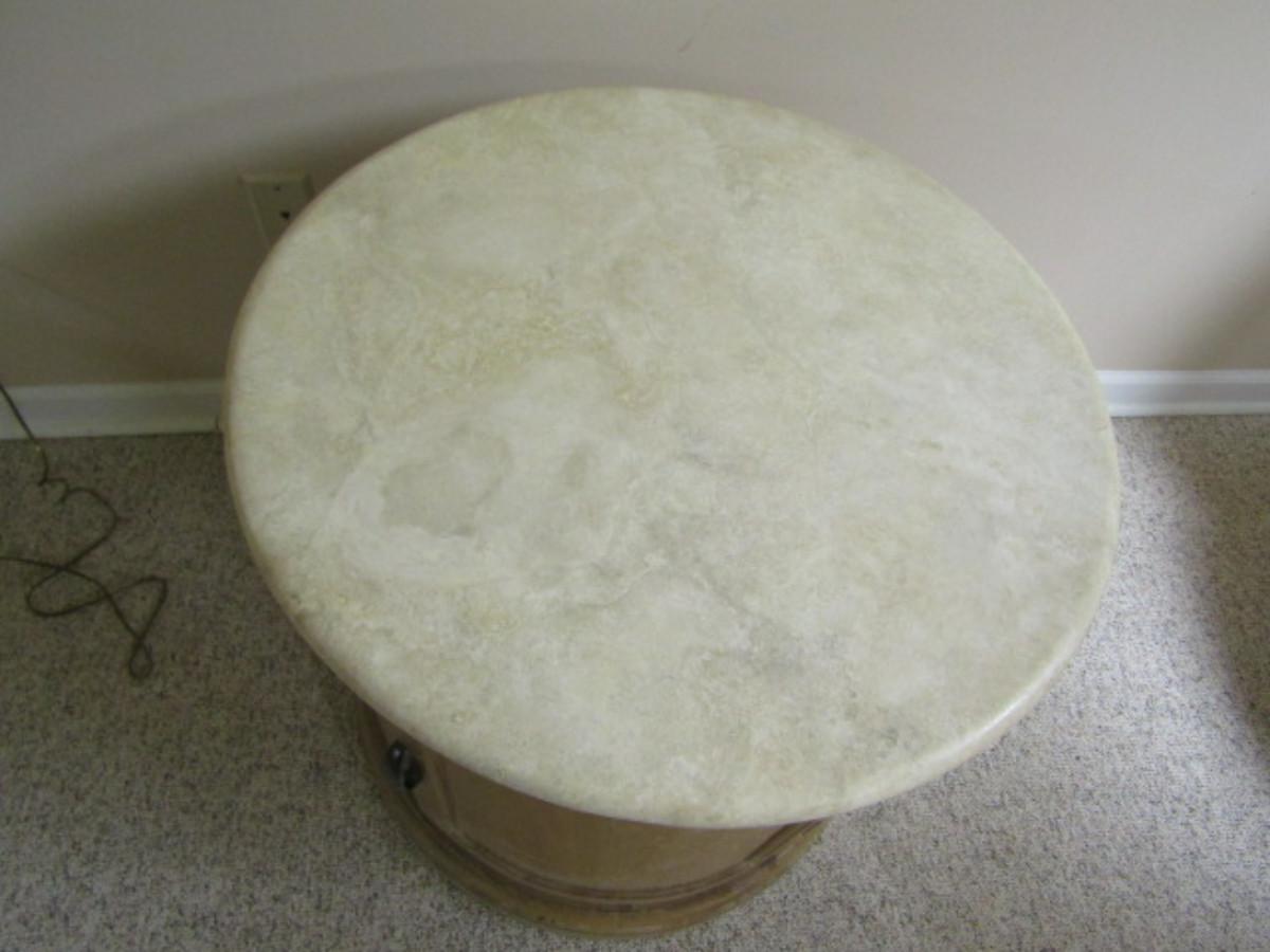 Stone Top Wooden Storage Table- Approx 26" in Diameter
