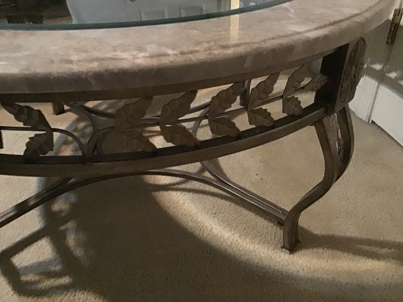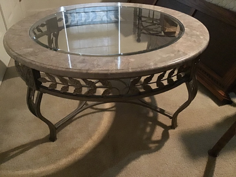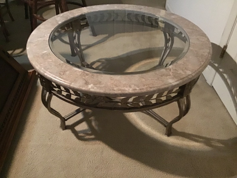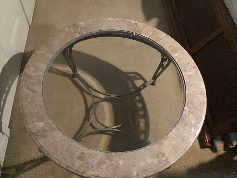 38INCH ROUND STONE TRIM WITH SOLID METAL BASE GLASS TABLE