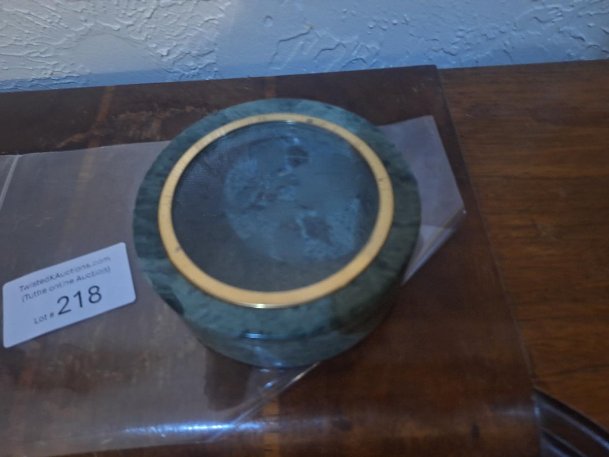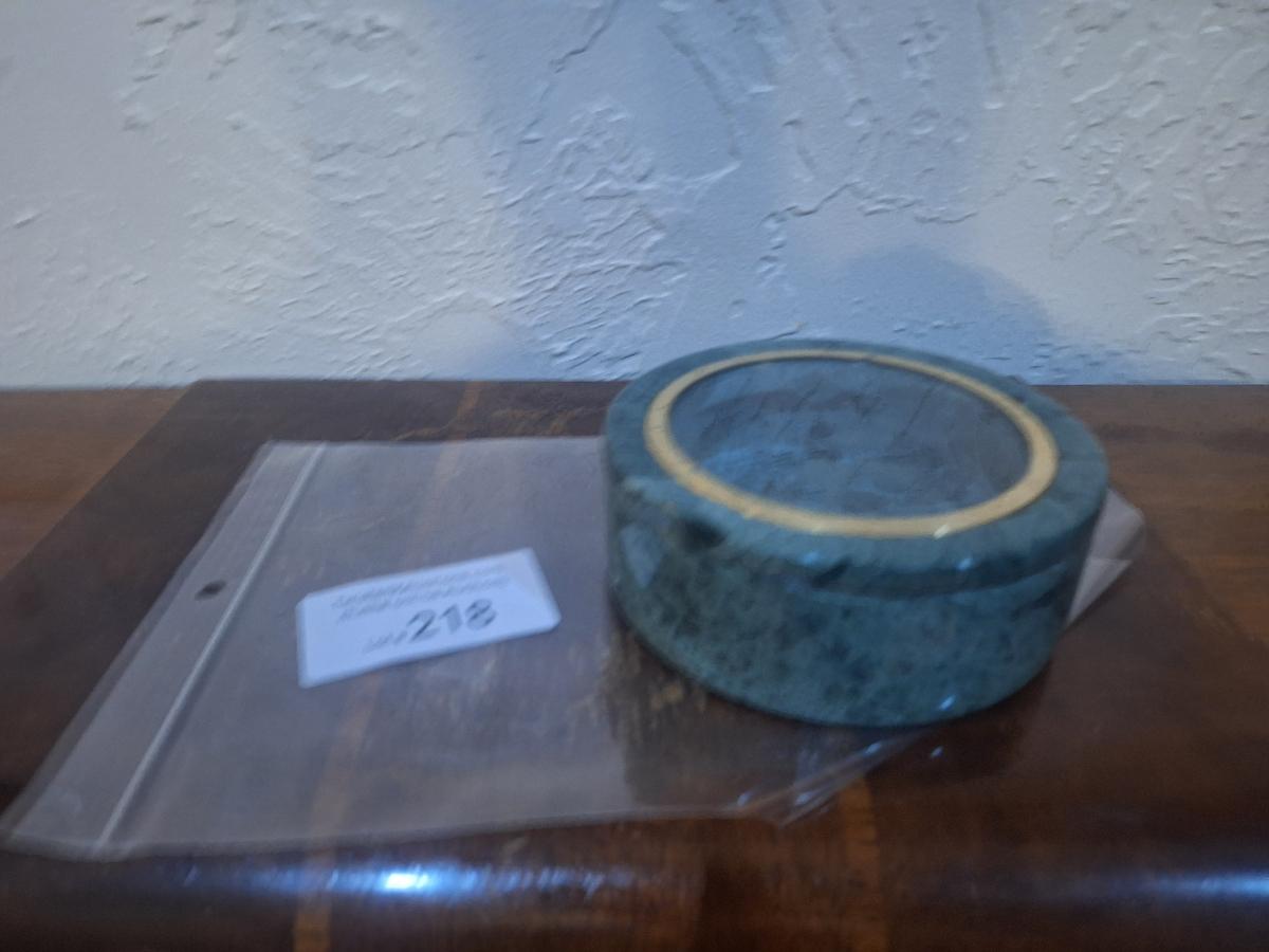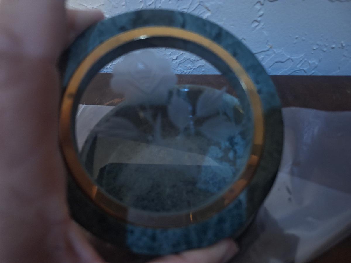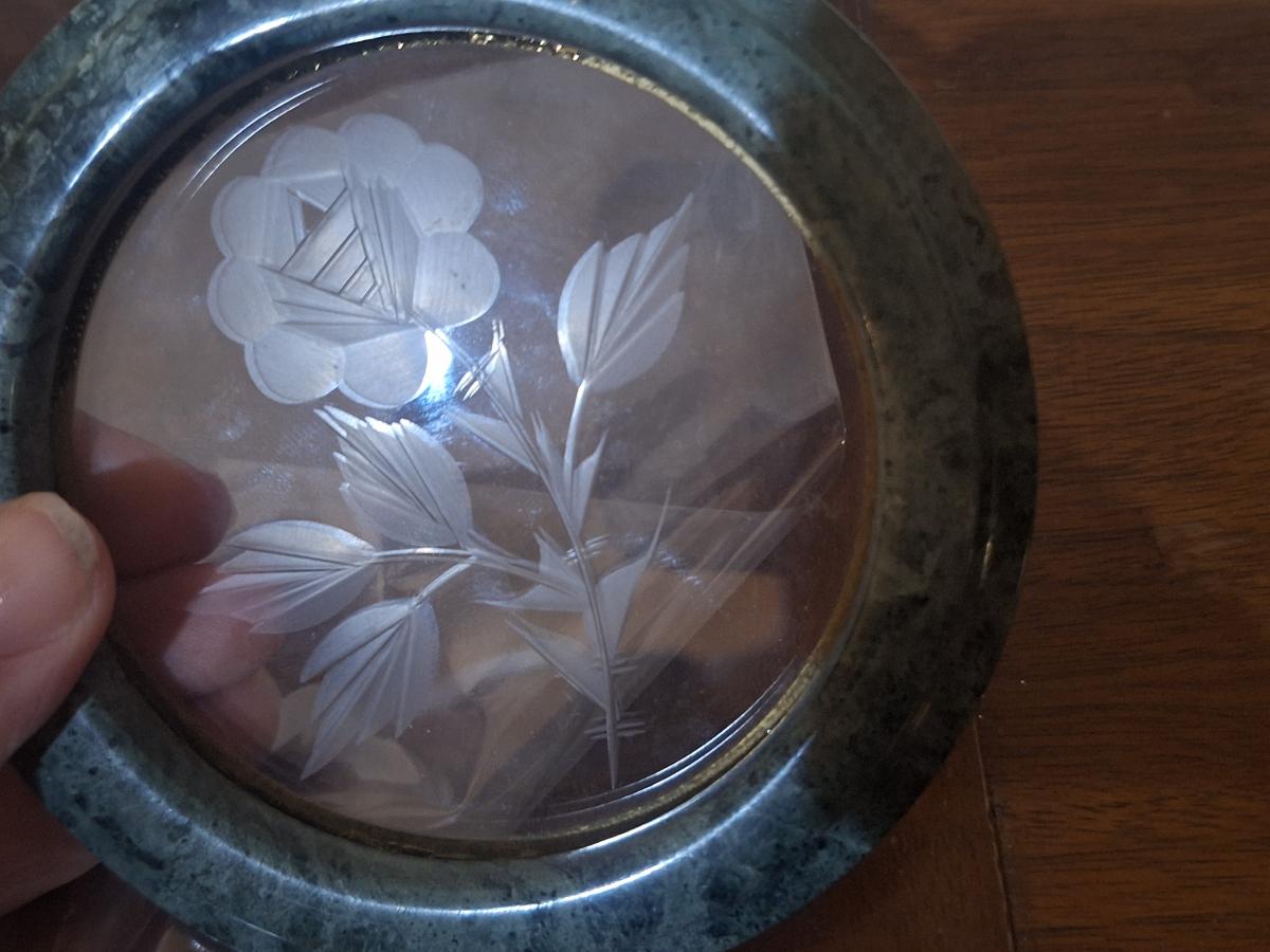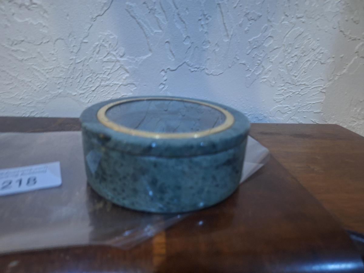 Stone trinket box with etched glass in lid
