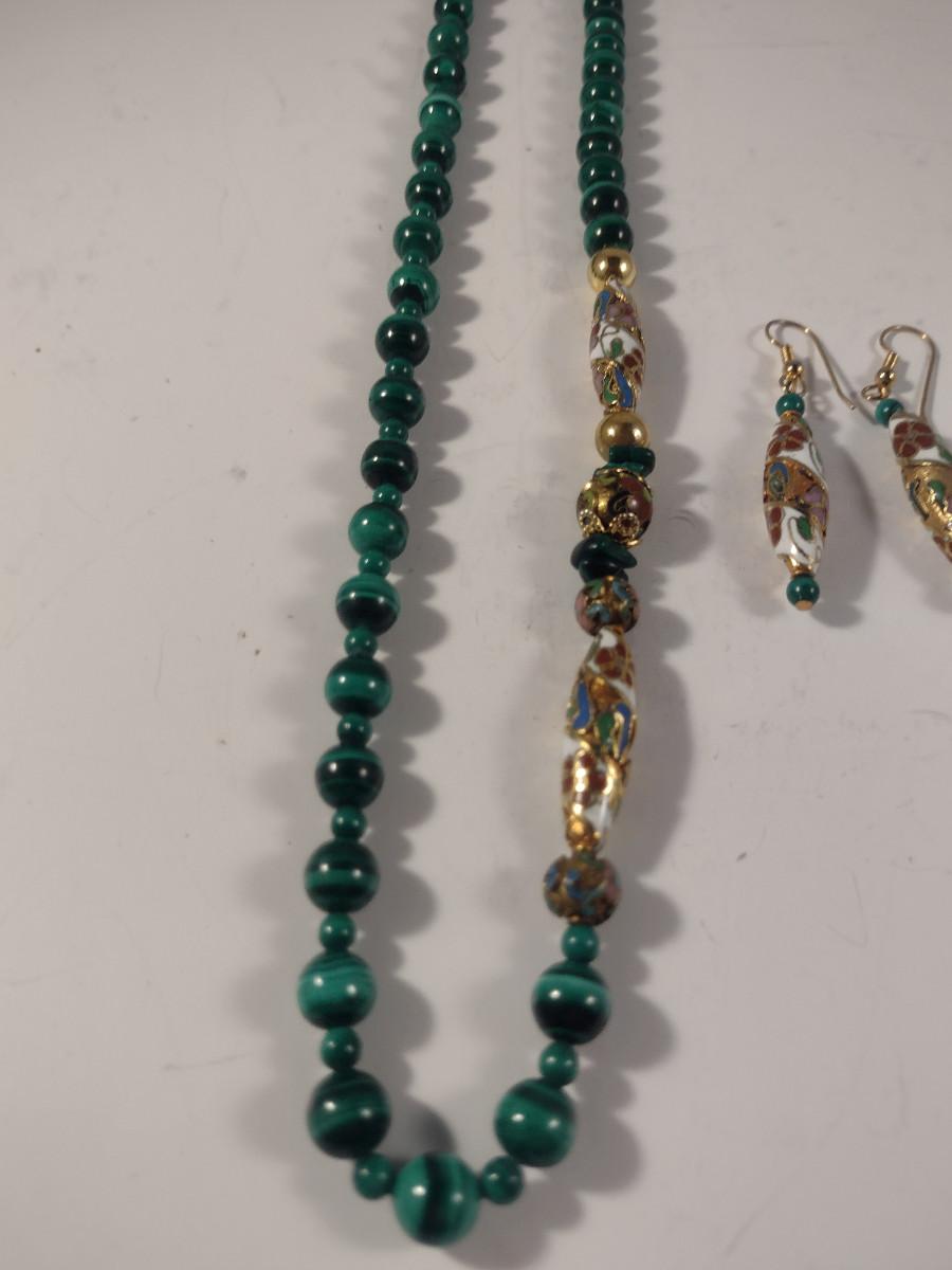 Stone with Enameled Bead Necklace and Earring Set (#8)